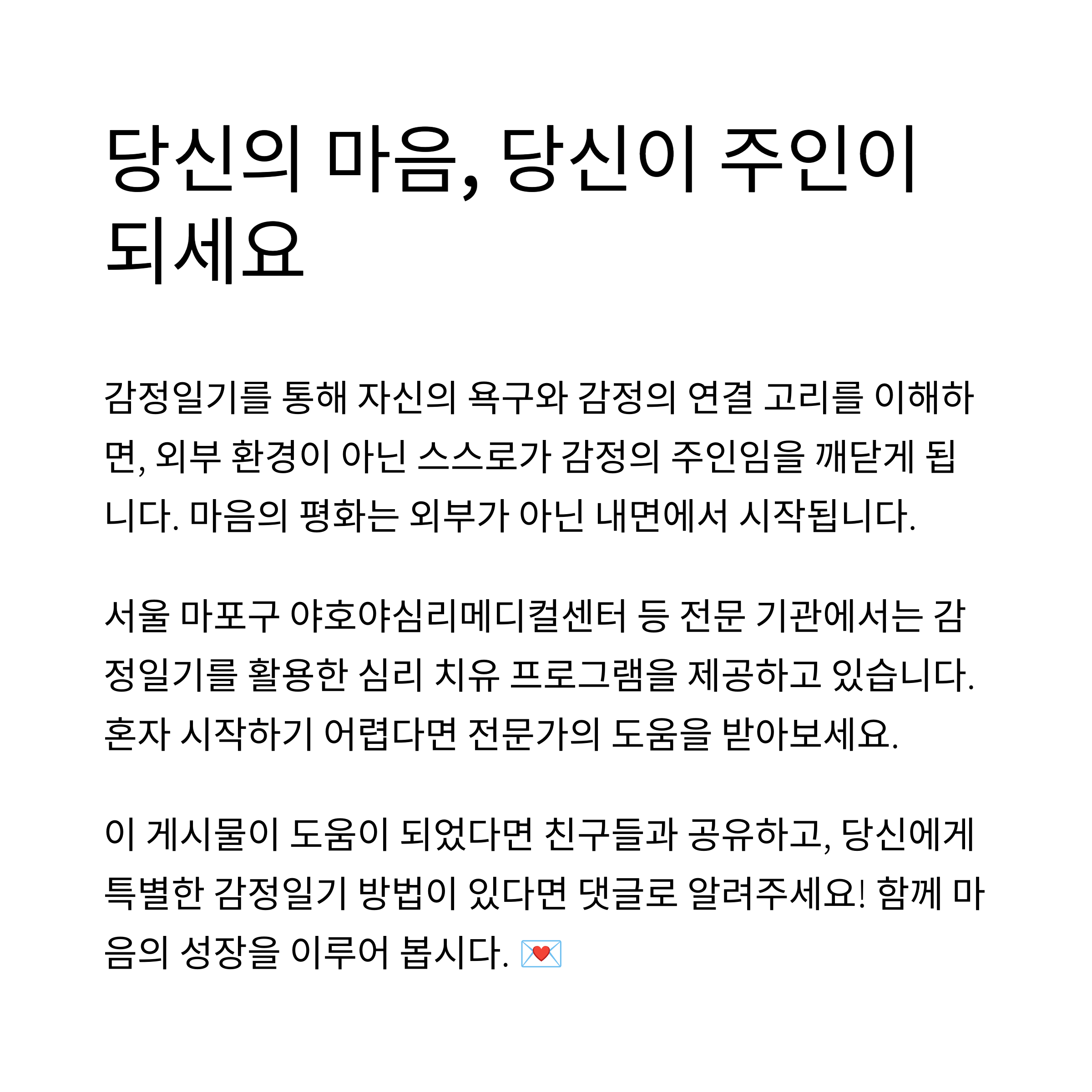 그렇기 때문에 꾸준한 감정일기 작성이 필수적입니다.
