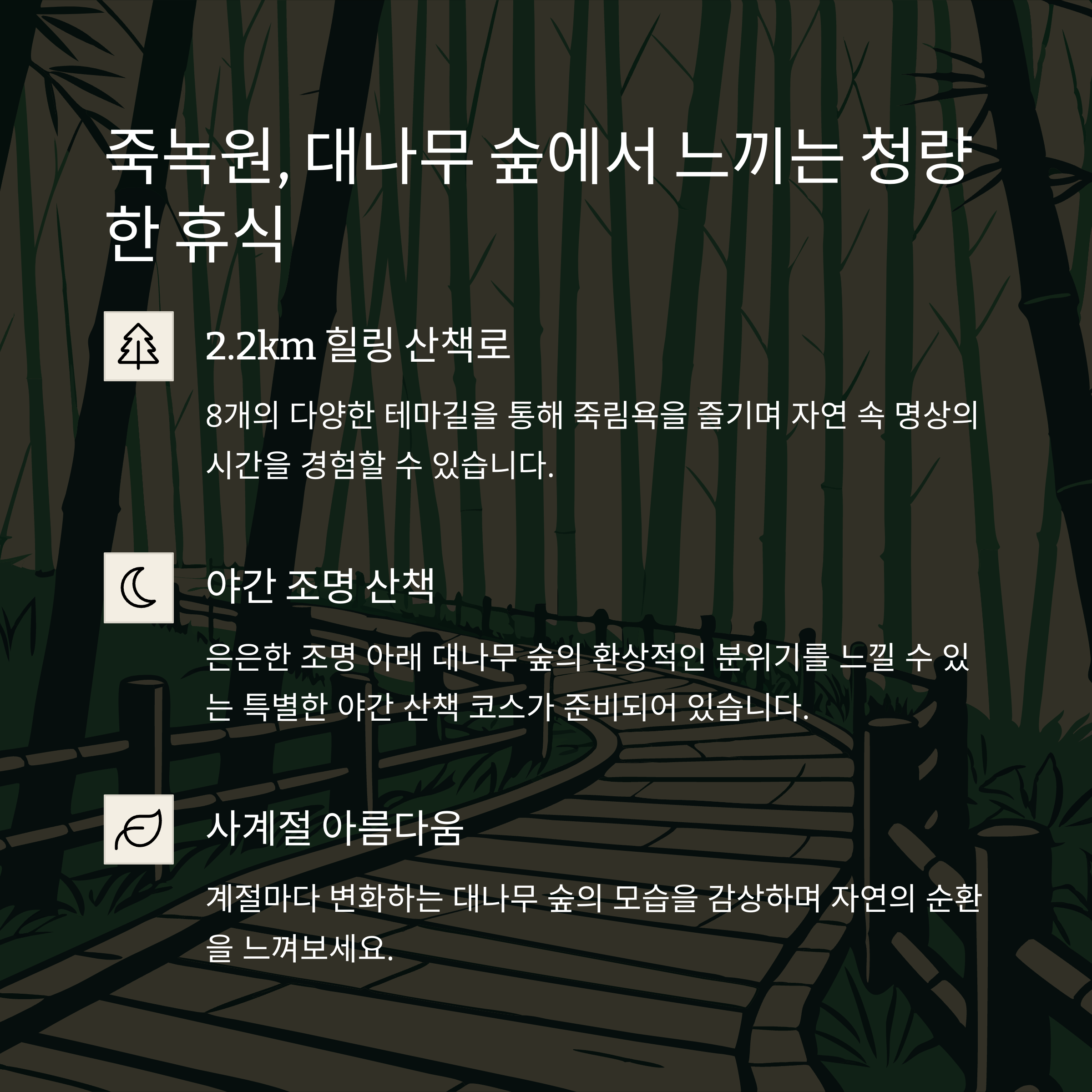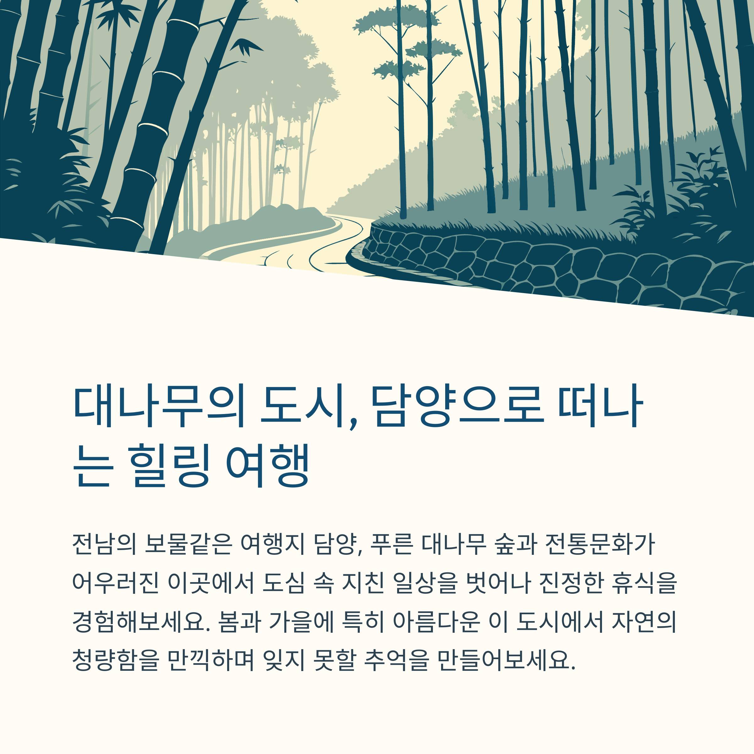오늘은 담양의 대나무 숲 속에서 할 수 있는 힐링 여행 코스를 소개해 드릴게요.