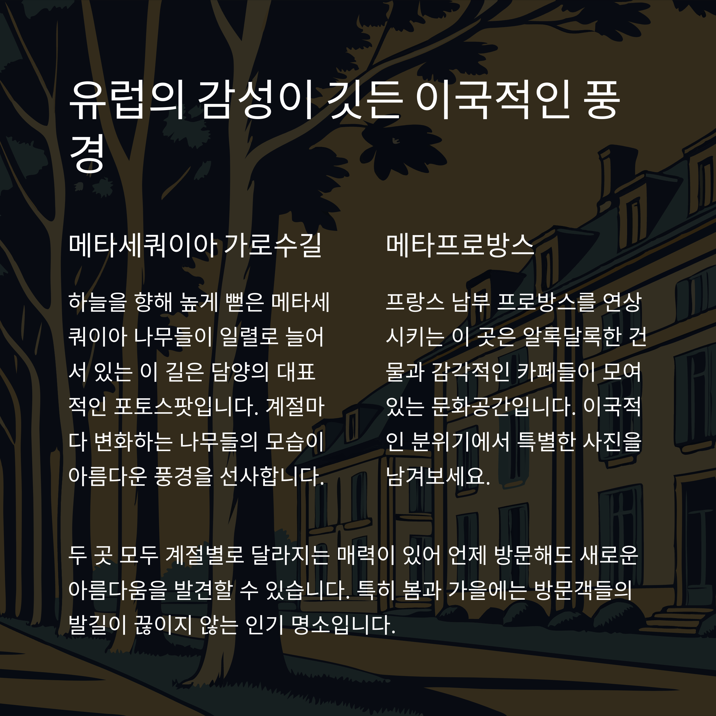 담양의 갬성 여행을 통해 특별한 추억을 만들어보세요.