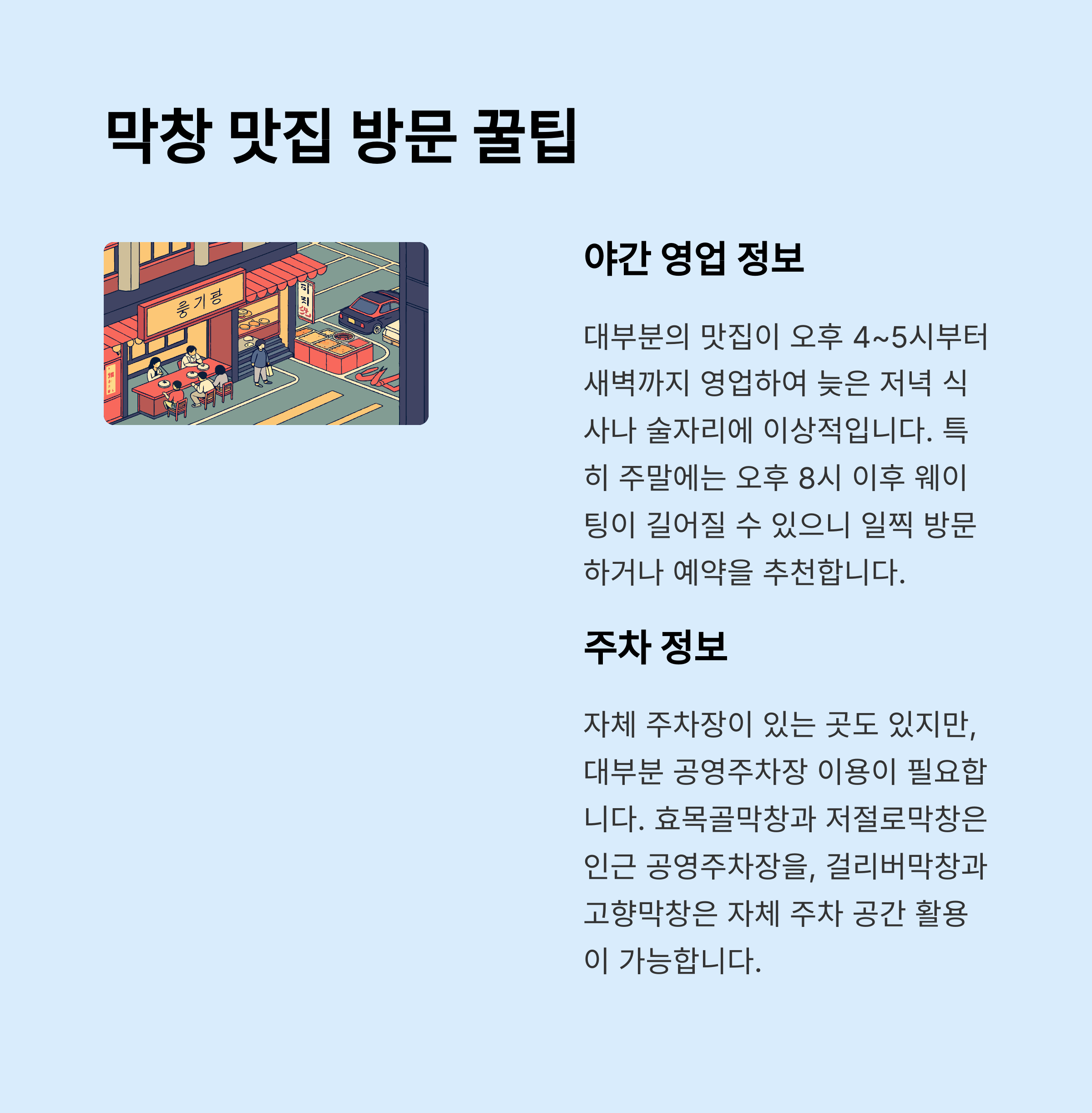 | 효목골막창 | 미제공 | 대구 동구 효동로 20 | 16:00~03:00 |