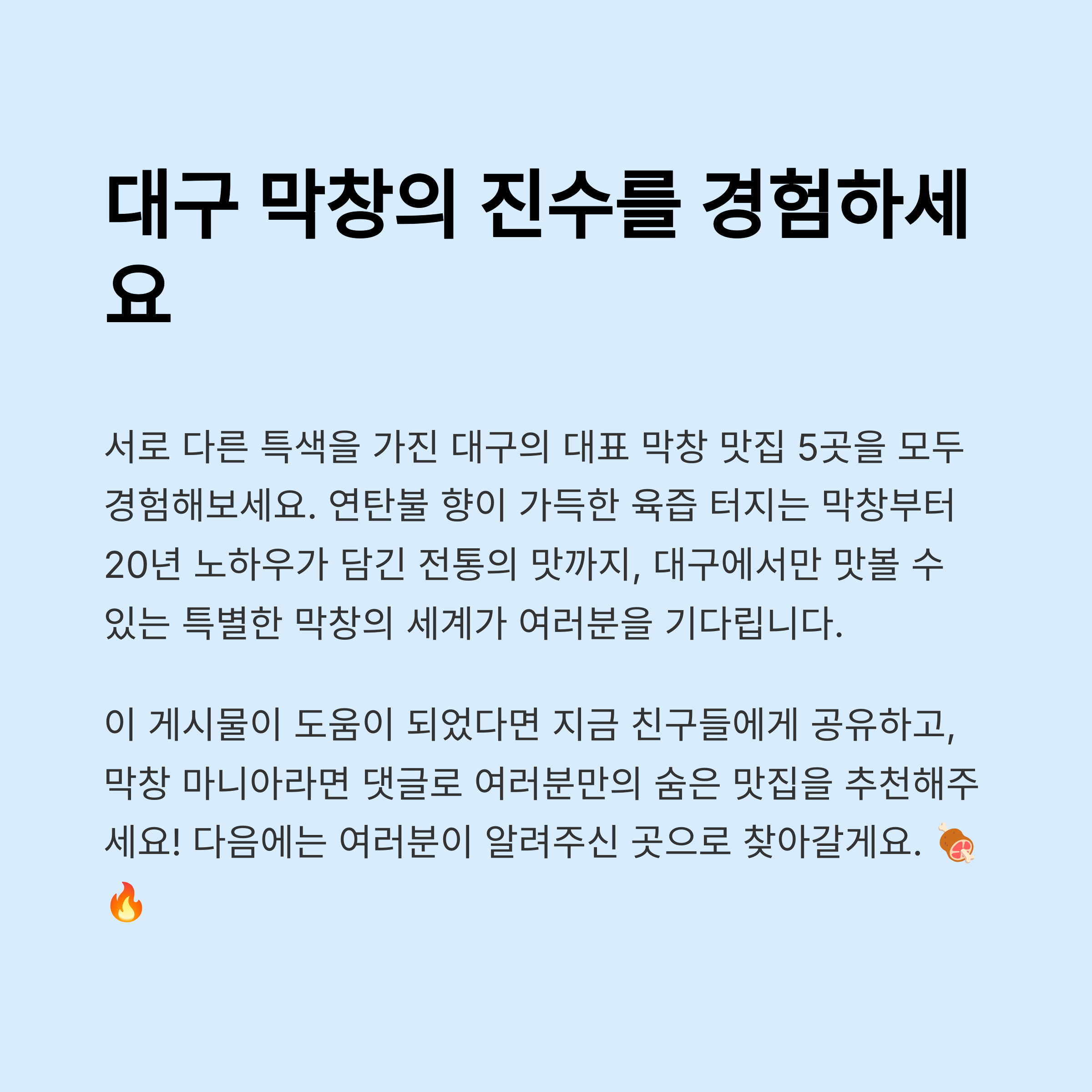 오늘은 대구의 막창 맛집에 대해 준비했습니다.