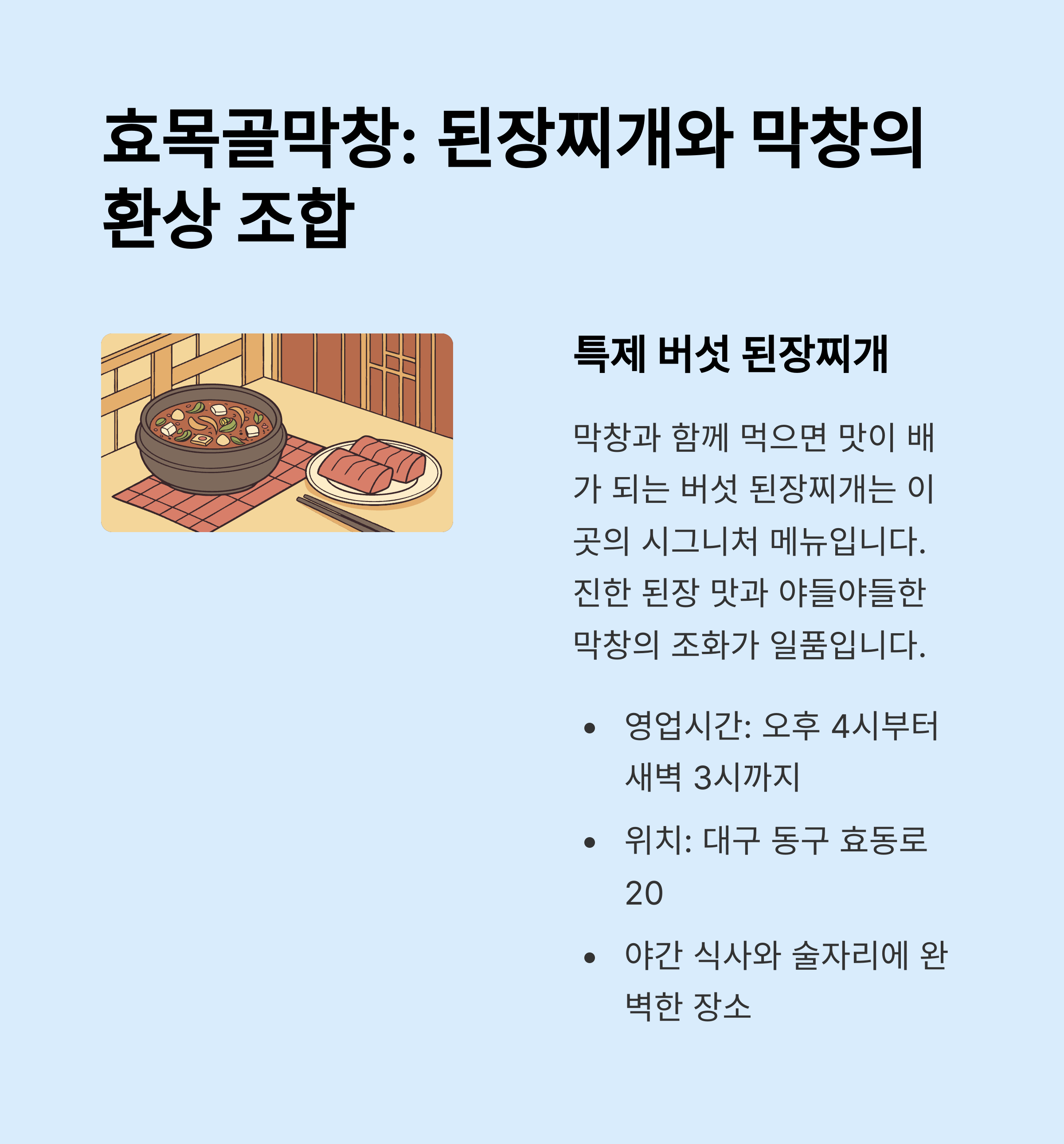 효목골막창은 된장찌개로 유명하니 꼭 맛보세요.