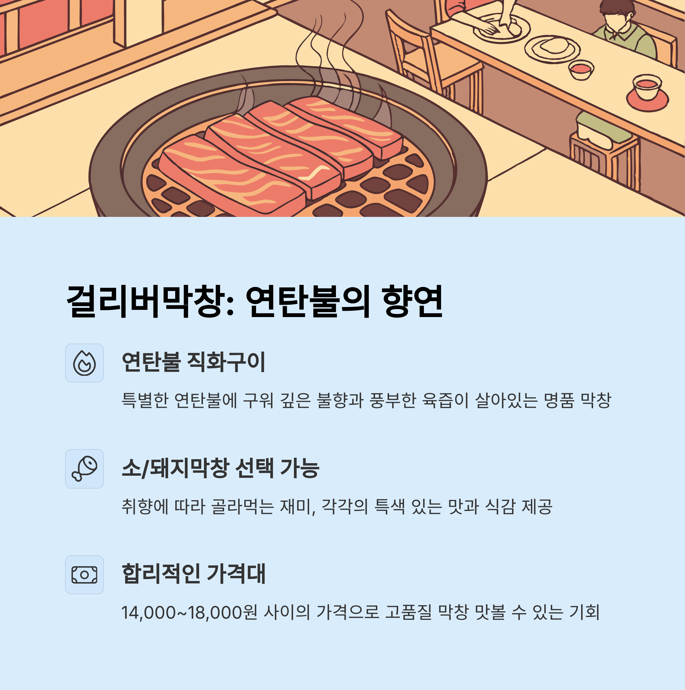 이들 맛집은 주로 연탄불과 직화 구이를 기본으로 하여 고소함을 강조합니다.