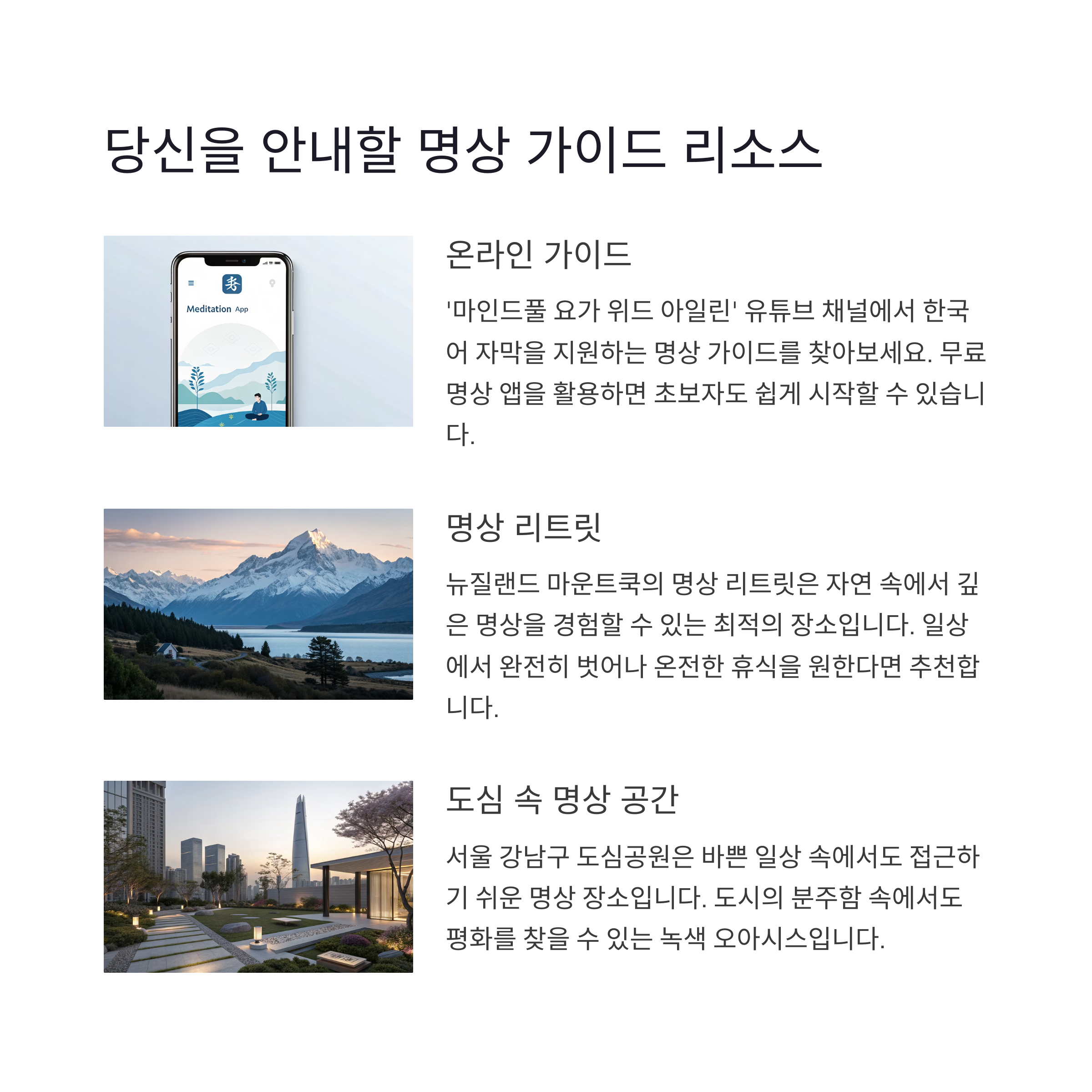 | 명상의 효과 | 불면증 개선율 최대 30% |