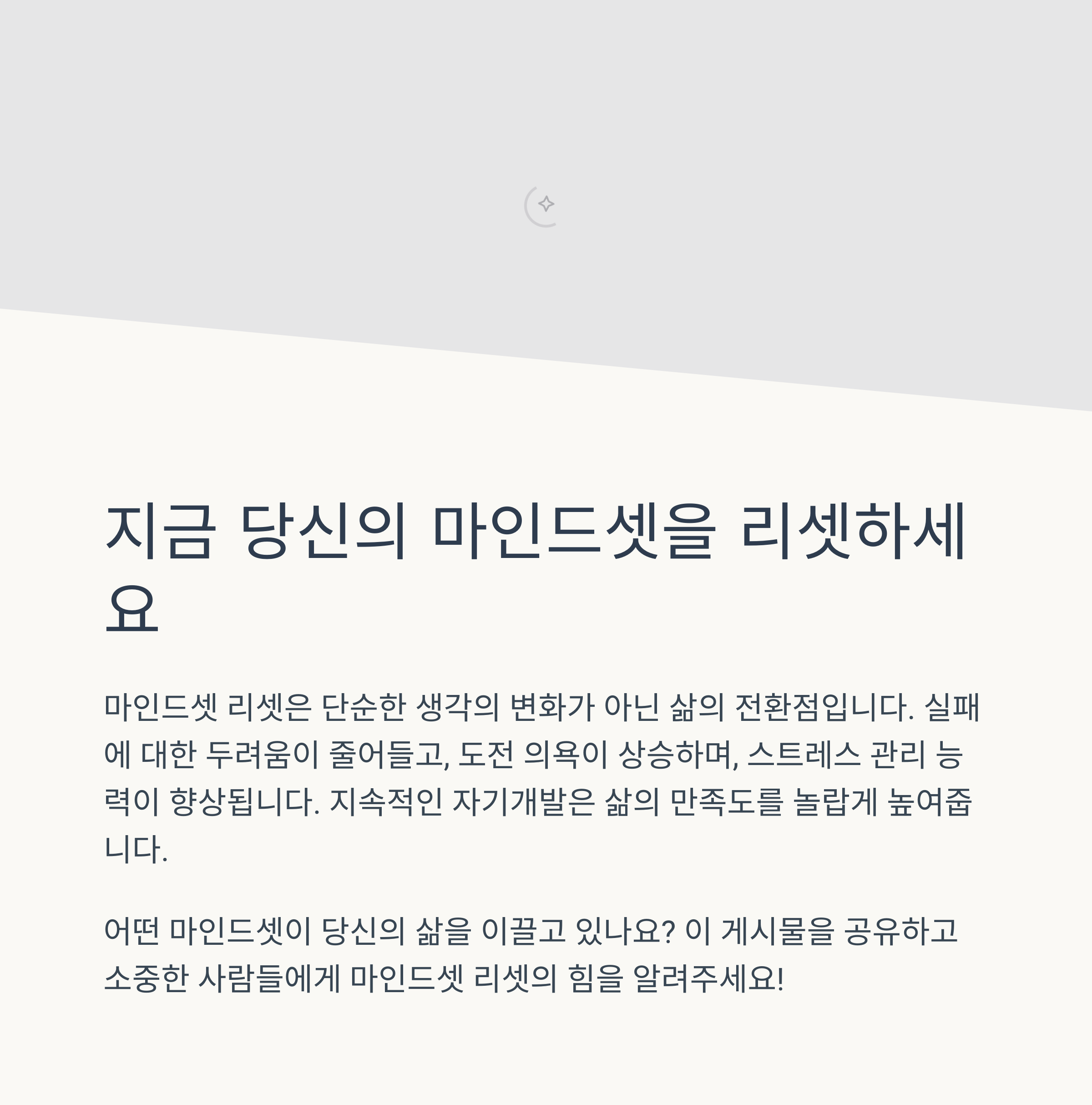 오늘은 마인드셋 리셋의 중요성에 대해 준비했습니다.