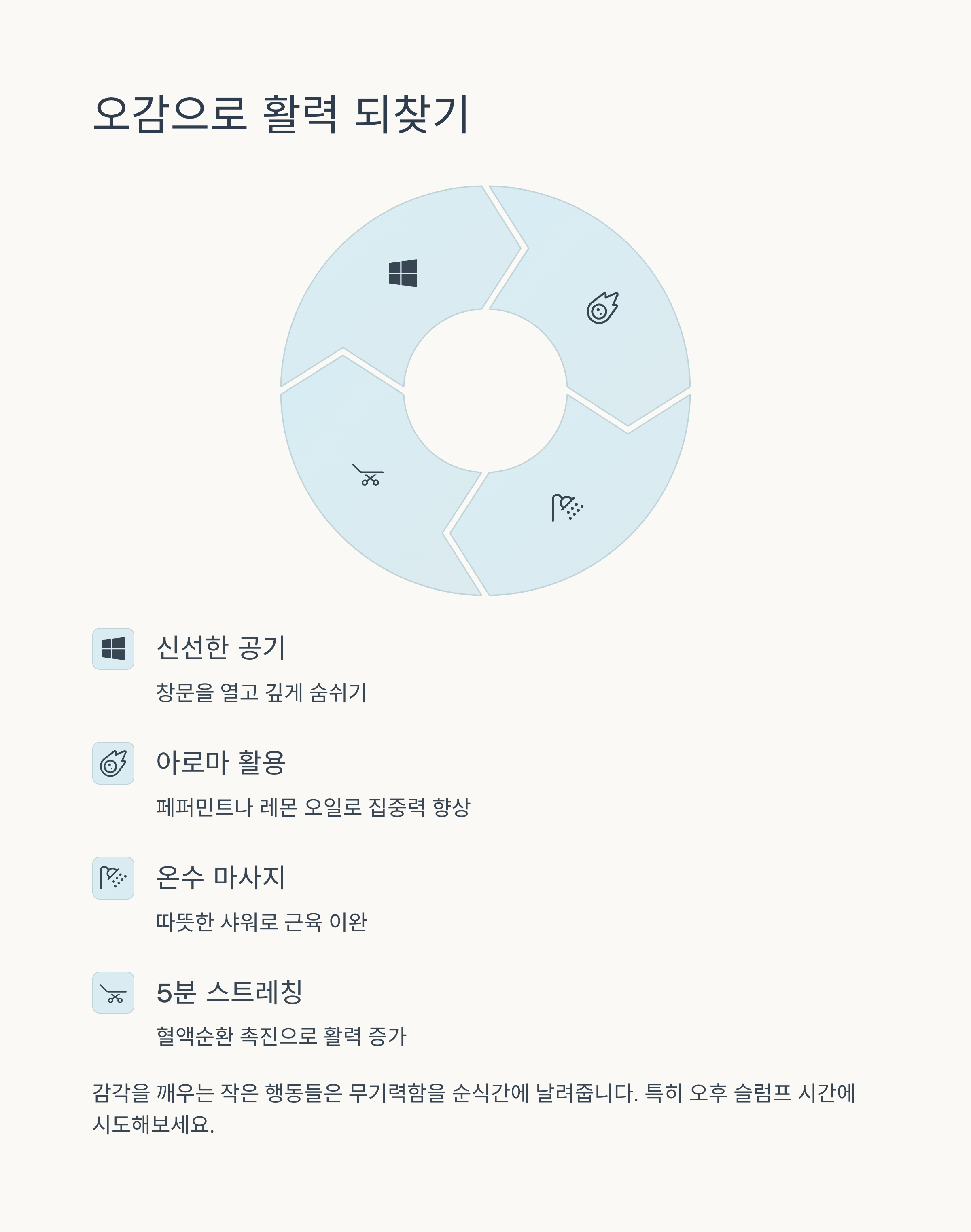 Q. 무기력을 극복하기 위한 감각 전환 방법은 무엇인가요? |