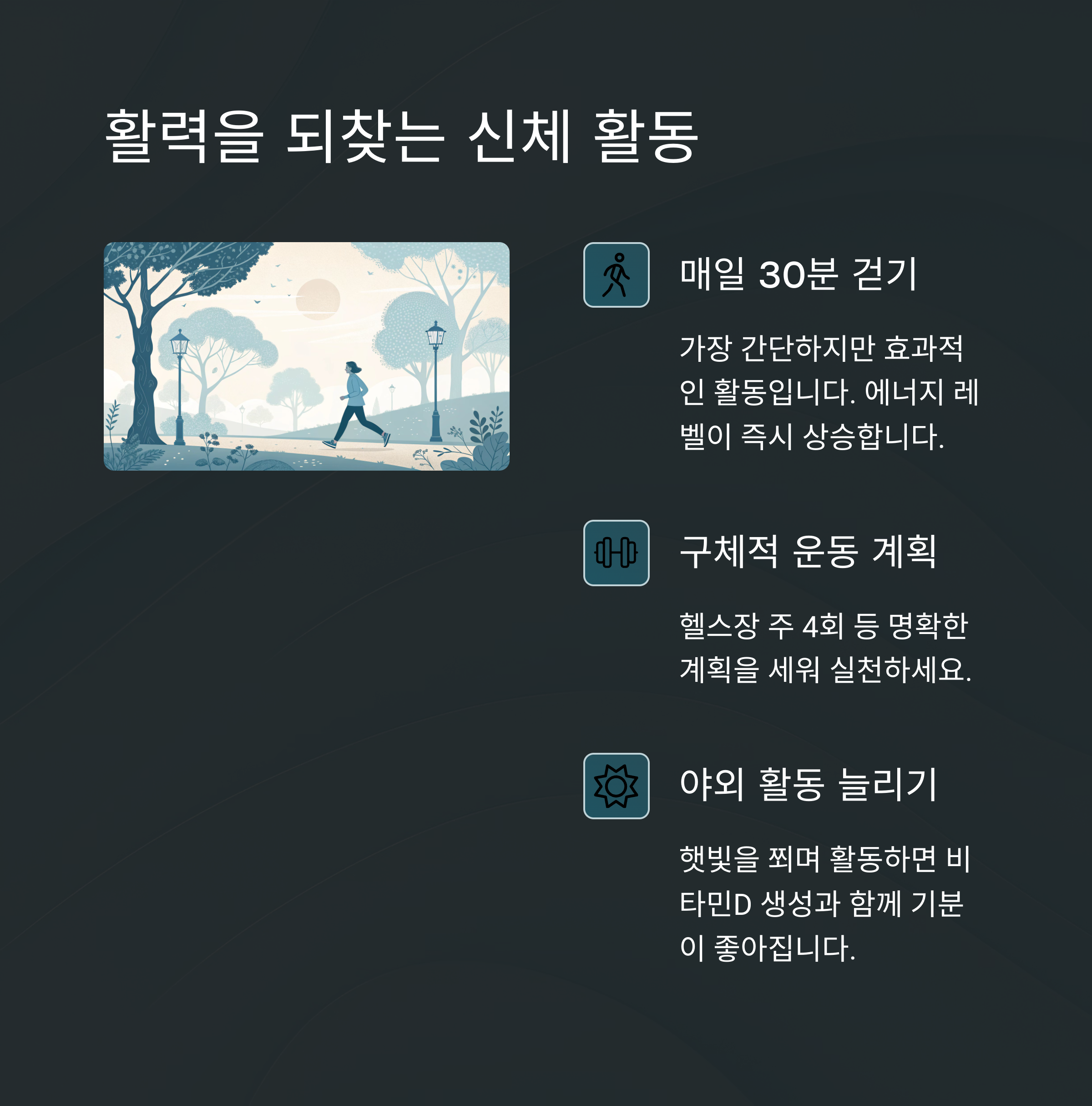 신선한 공기와 감각 자극은 무기력한 기분을 해소하는 데 유용합니다.