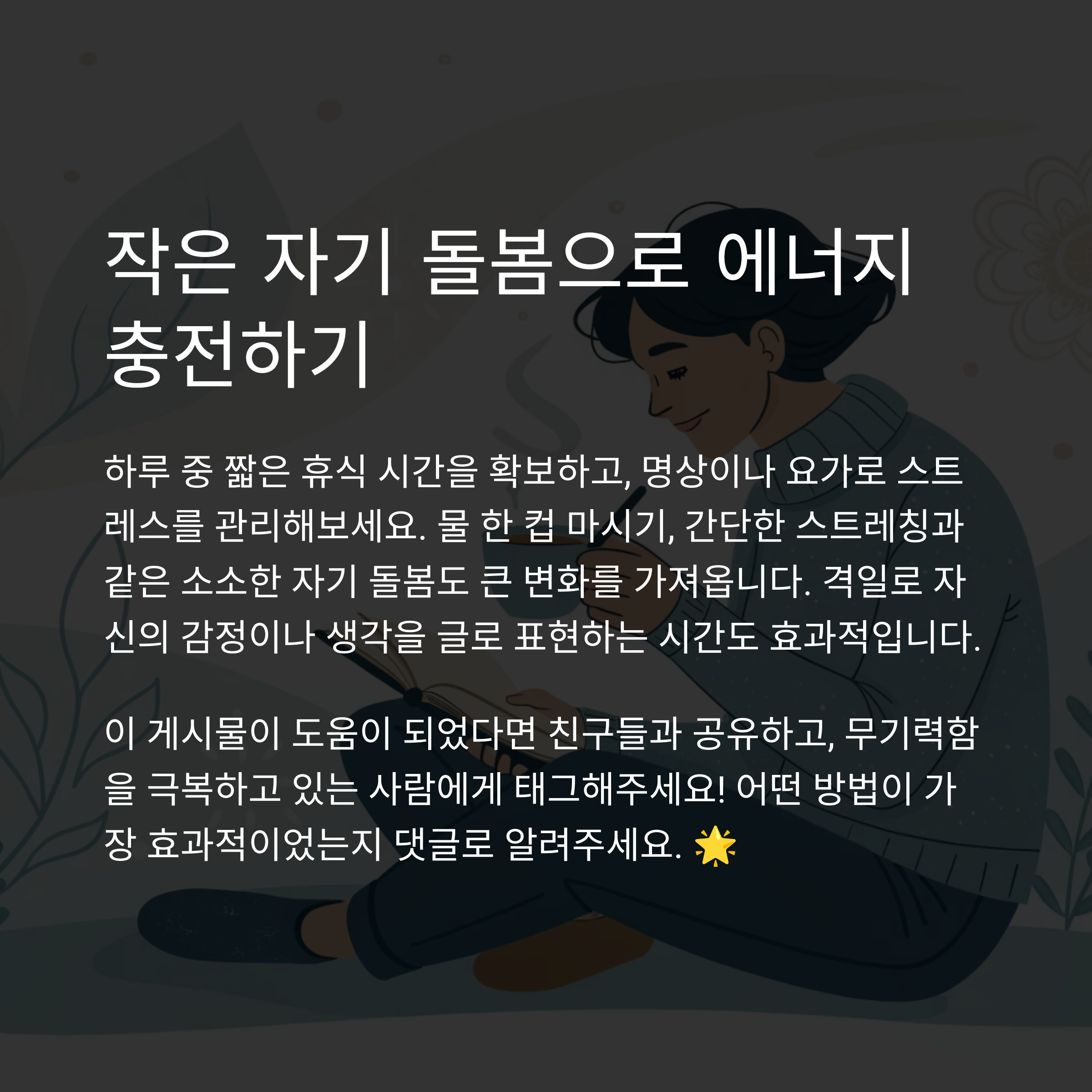 무기력함은 일상생활에서 많은 사람들을 힘들게 하는 요소입니다.