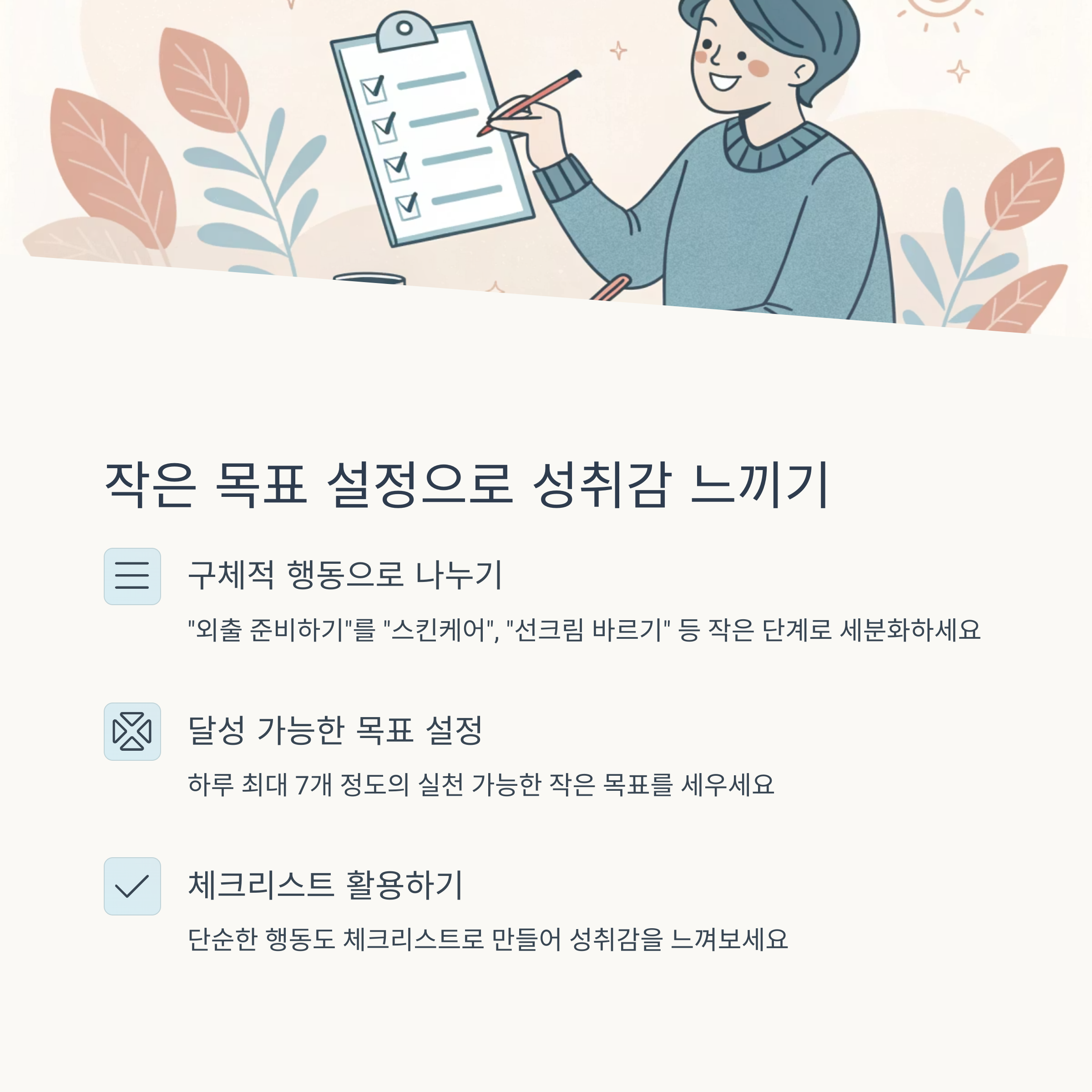 작은 목표를 세우고 이루는 경험이 중요합니다.