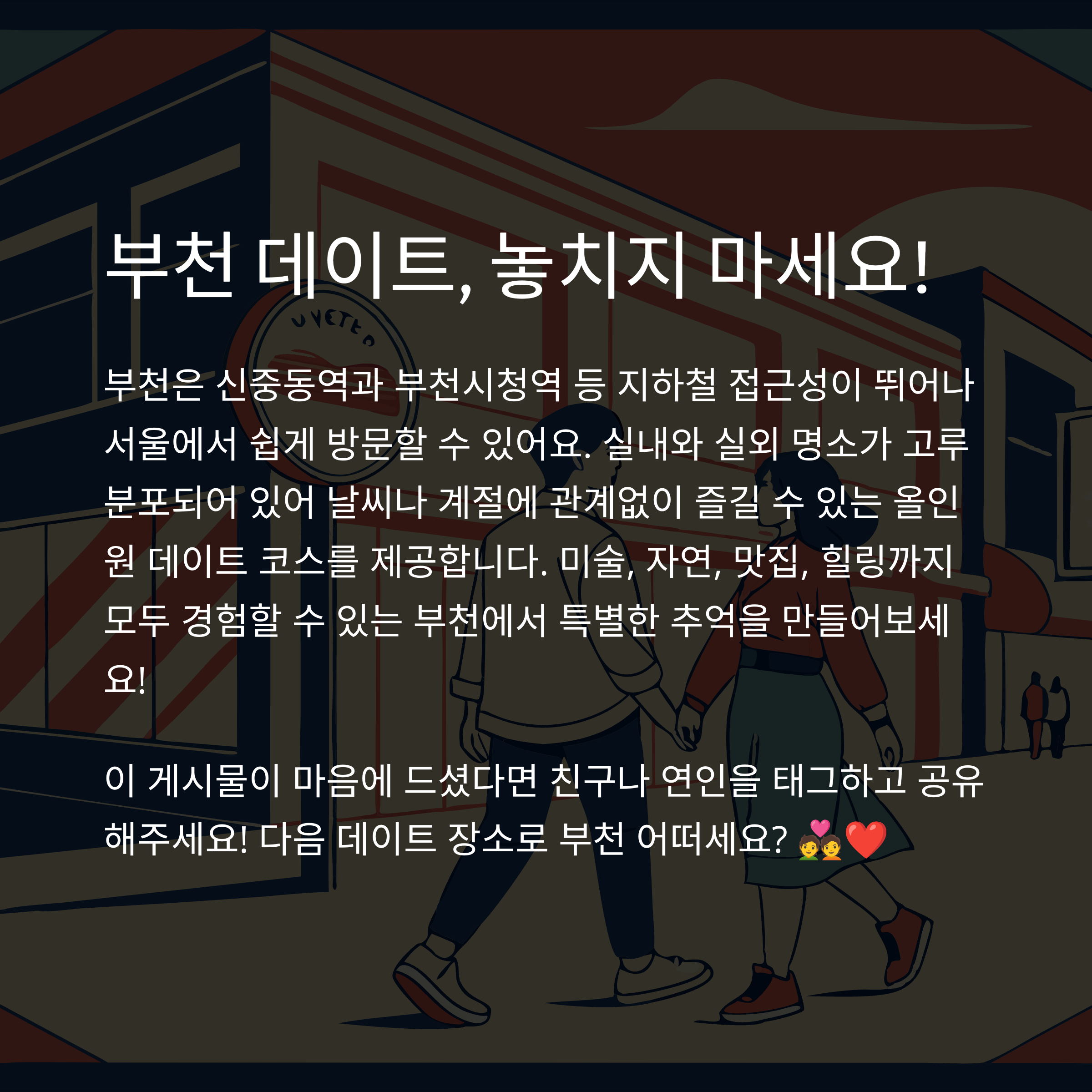오늘은 부천이라는 매력적인 도시를 탐방하면서, 특별한 데이트 코스를 추천드리려고 합니다.