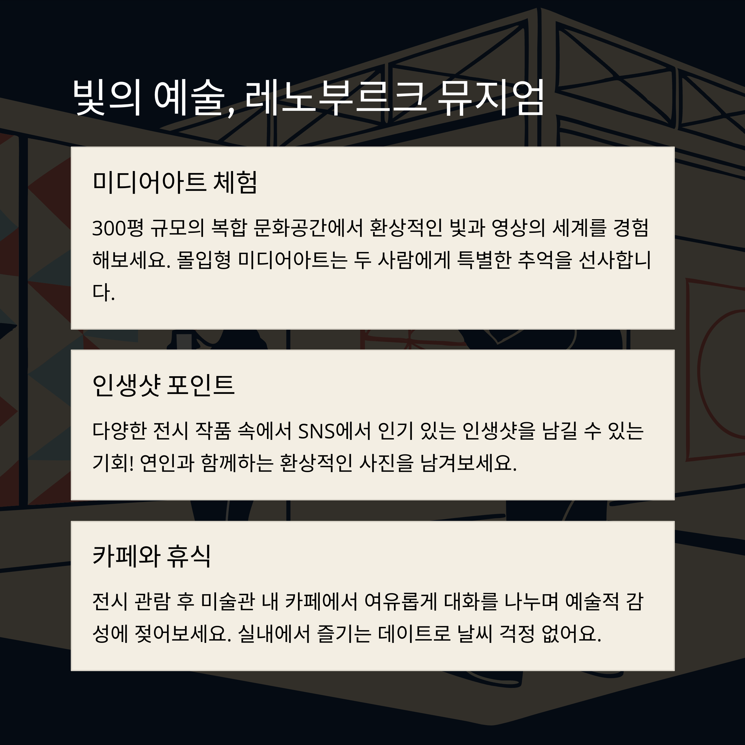 여기에 제안드리는 데이트 장소와 코스를 통해 특별한 기억을 남길 수 있습니다.