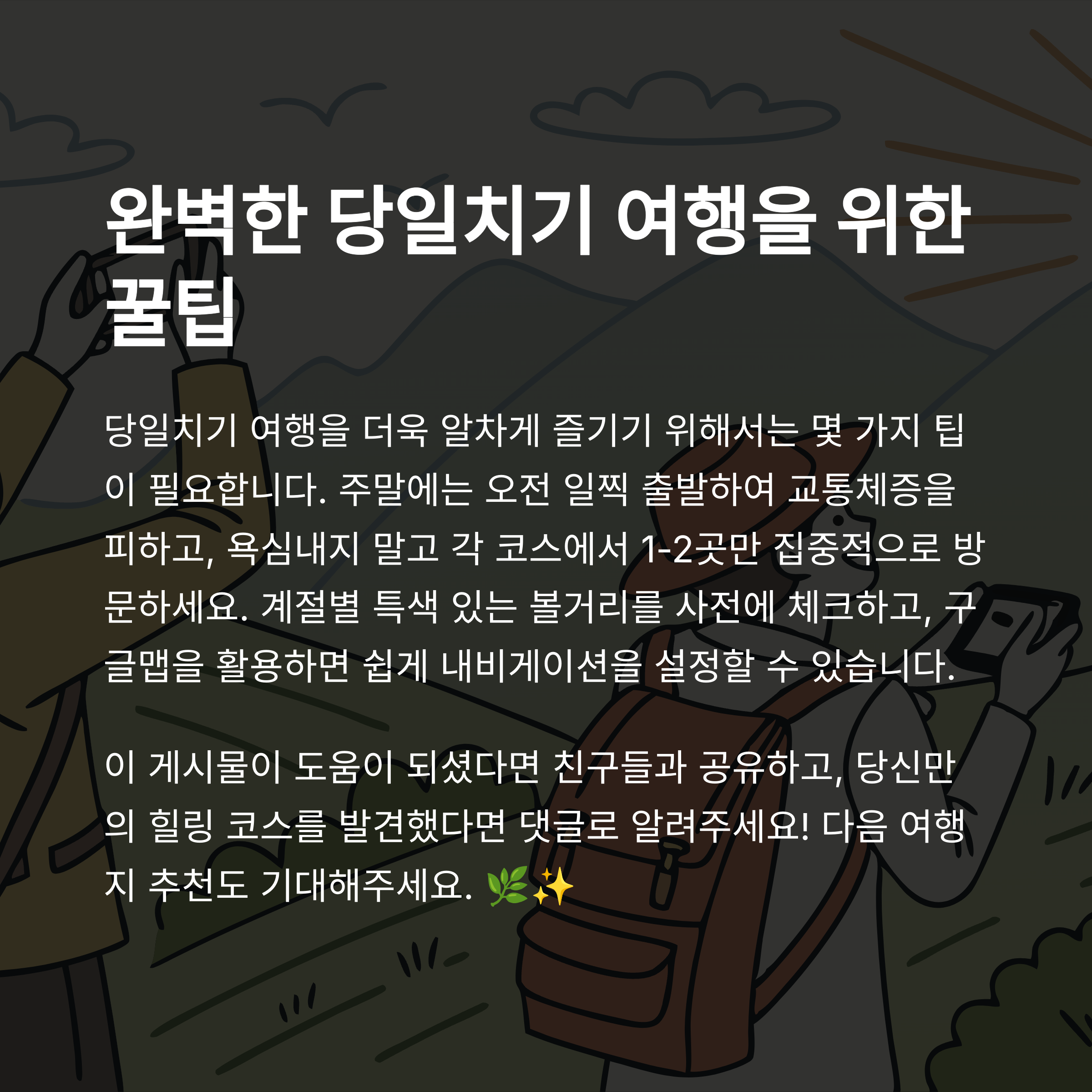 서울 근교의 당일치기 힐링 코스는 주말에 일상에서 벗어나기에 최적의 선택입니다.