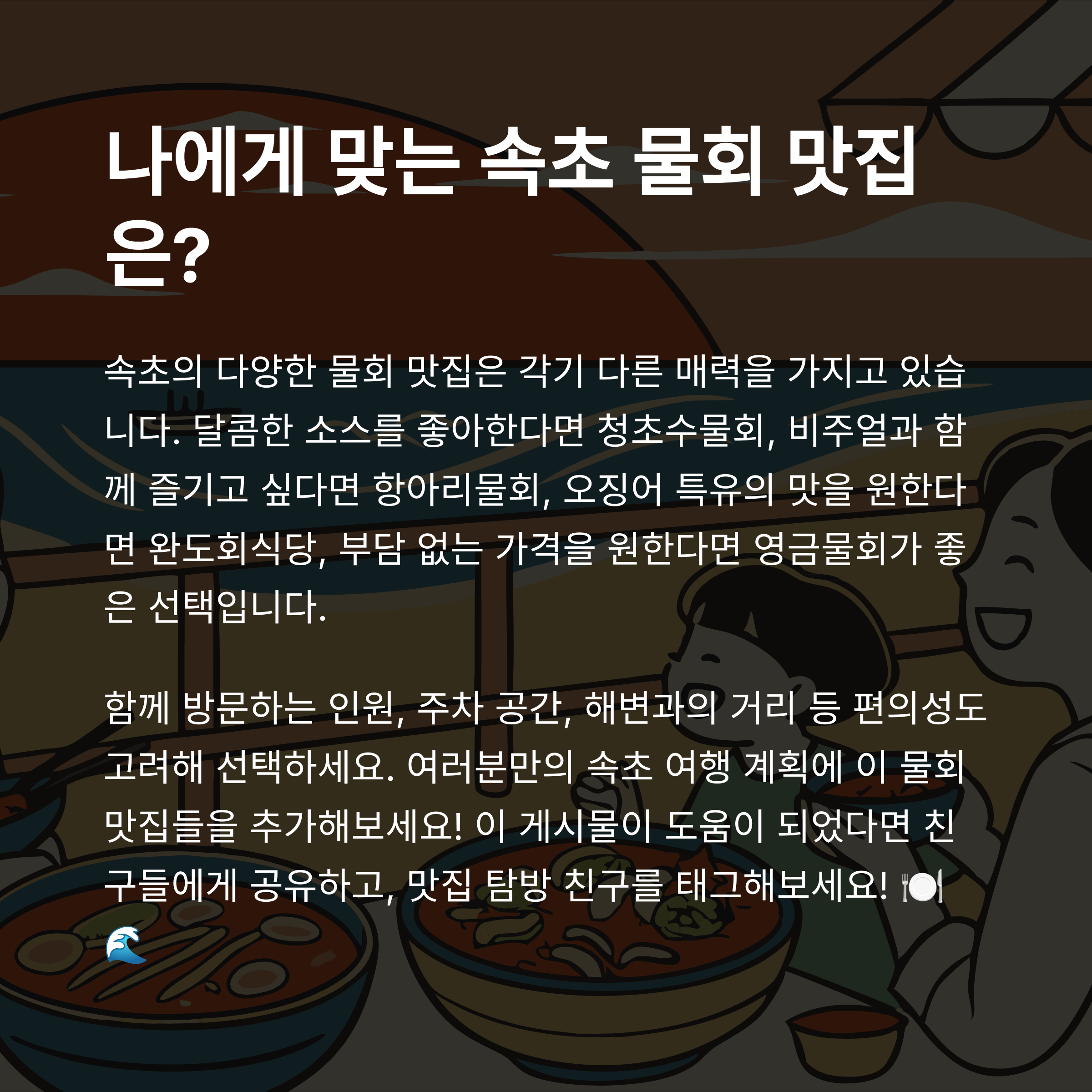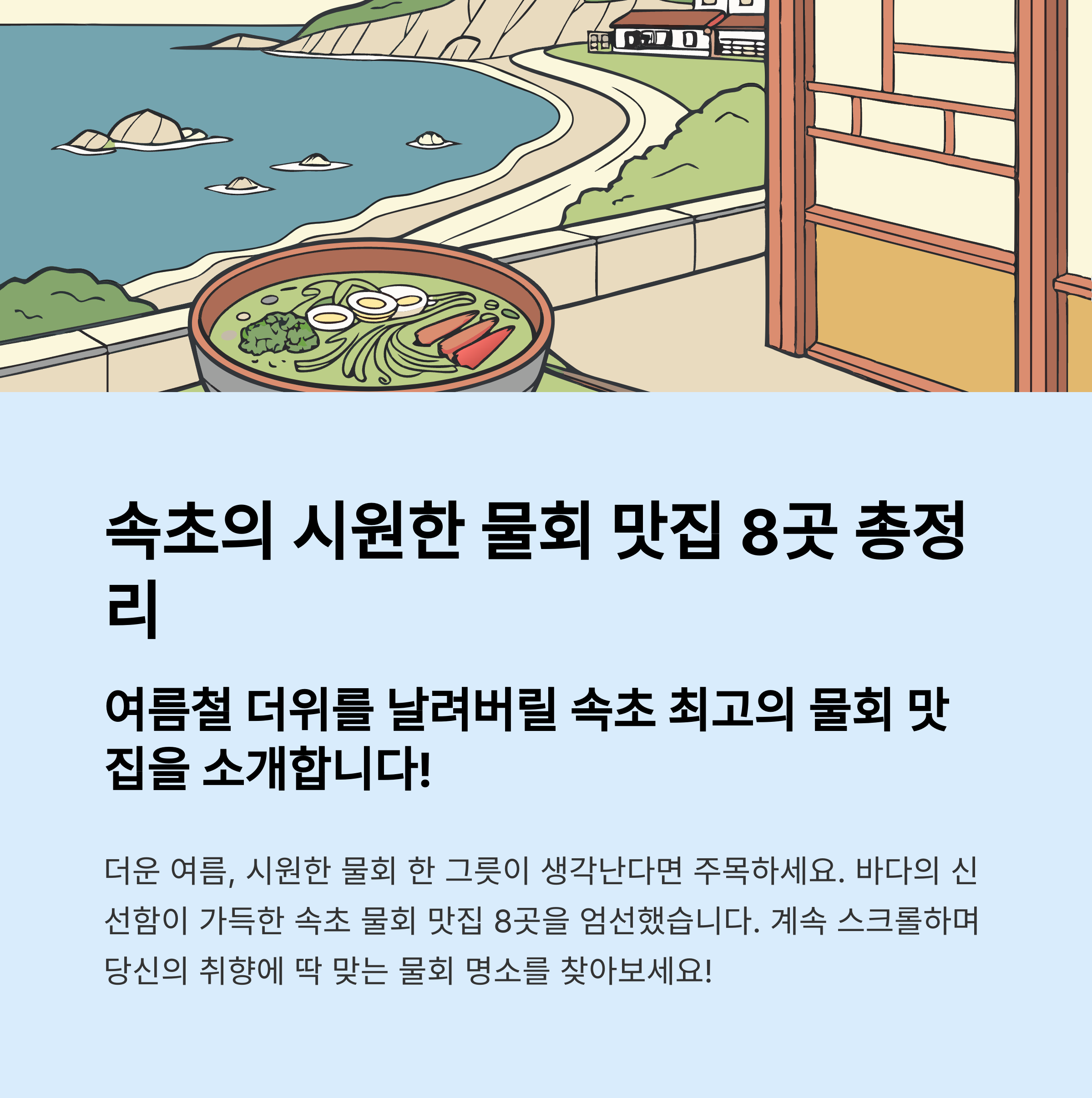 여름철 갈증을 해소해 줄 속초 물회의 매력을 소개하려고 합니다.