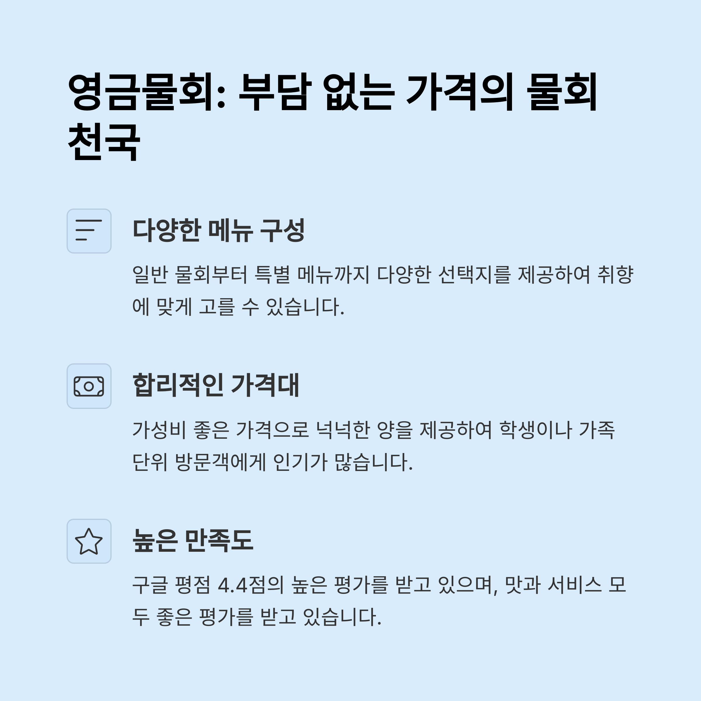 가격과 품질 측면에서 많은 사람들이 만족하는 맛집으로 평가받고 있습니다.