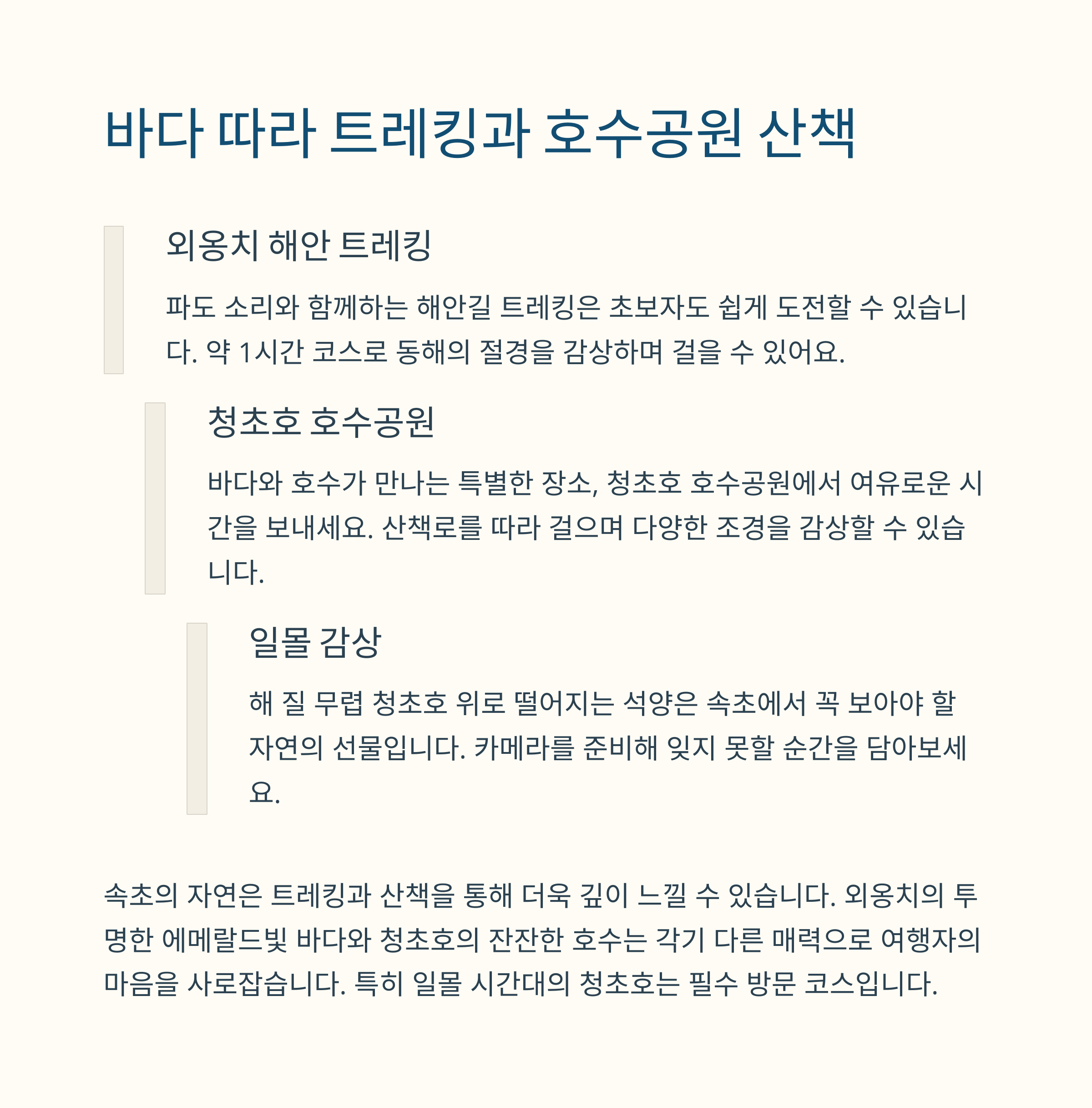 속초는 바다와 산을 동시에 경험할 수 있는 치유의 장소입니다.