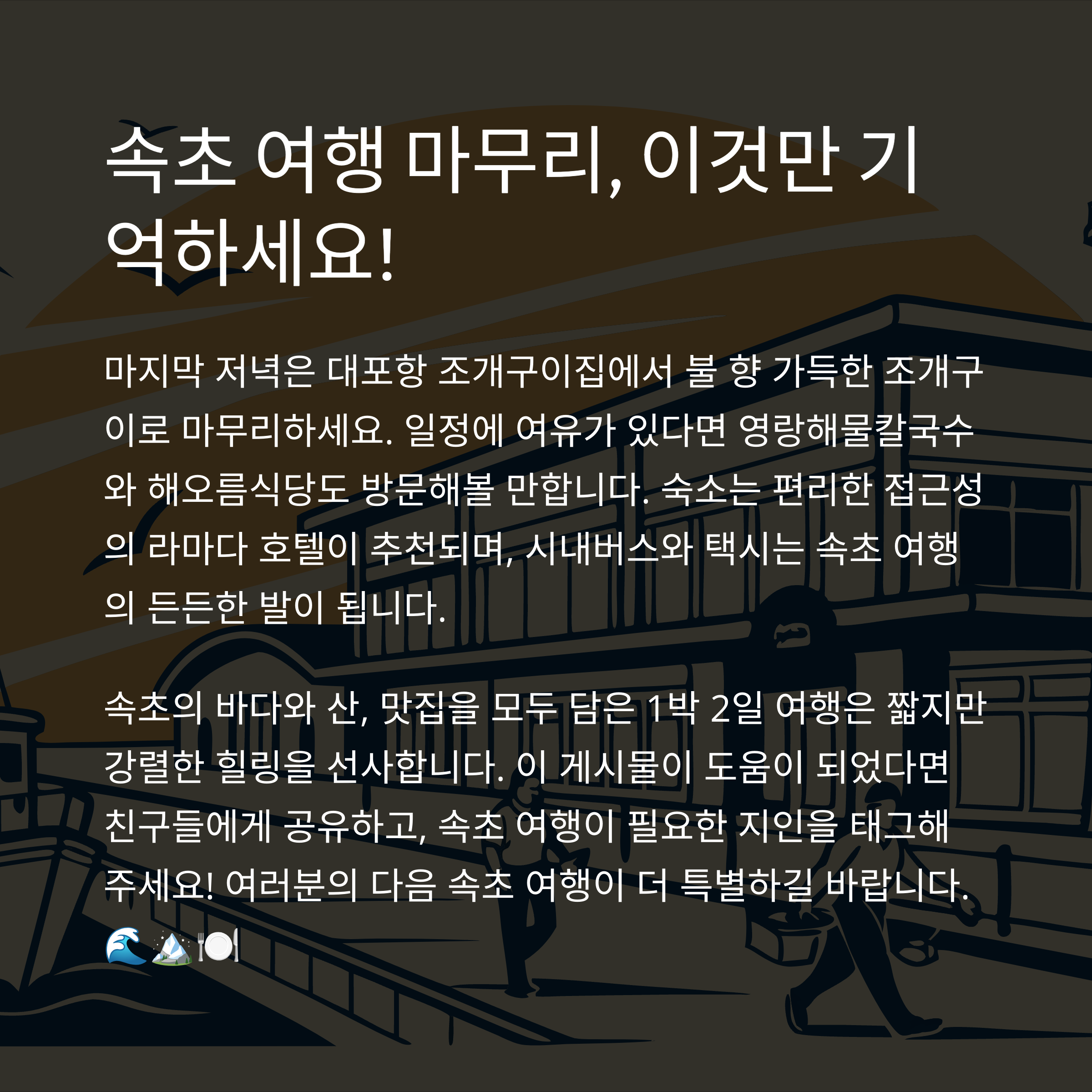 속초는 분명히 다시 찾아오고 싶은 곳이 될 것입니다.