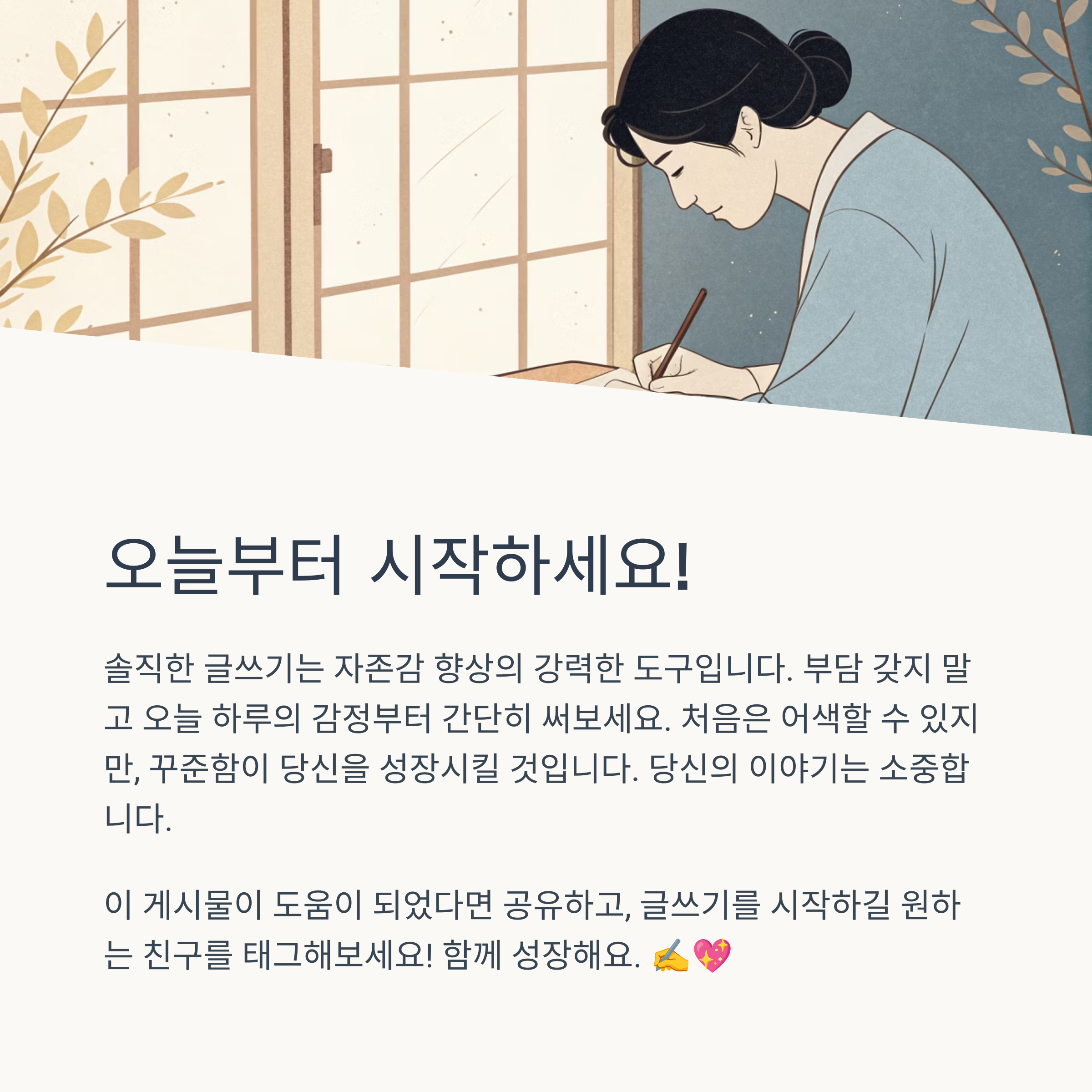 자존감 향상은 솔직한 글쓰기를 통해 이루어질 수 있습니다.