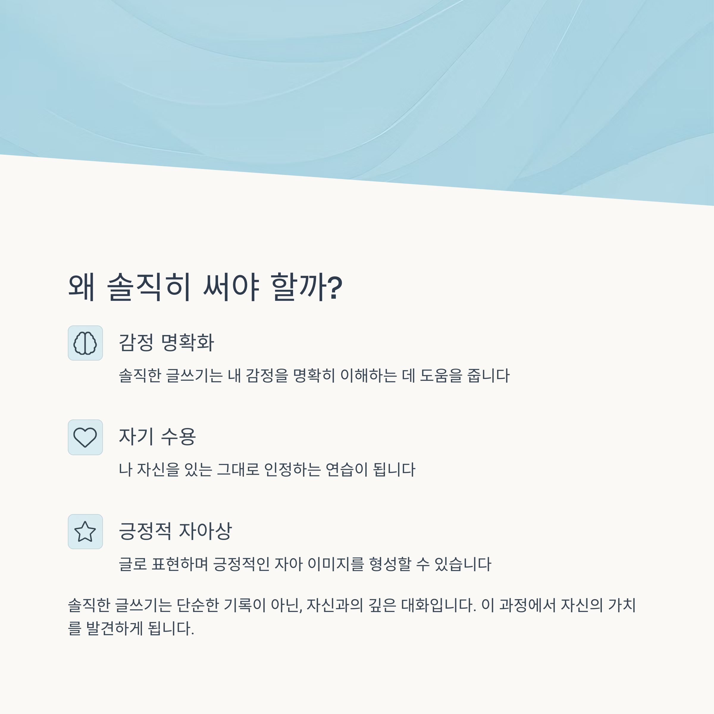 솔직한 글쓰기는 감정을 명확히 표현하는 데 도움을 줍니다.