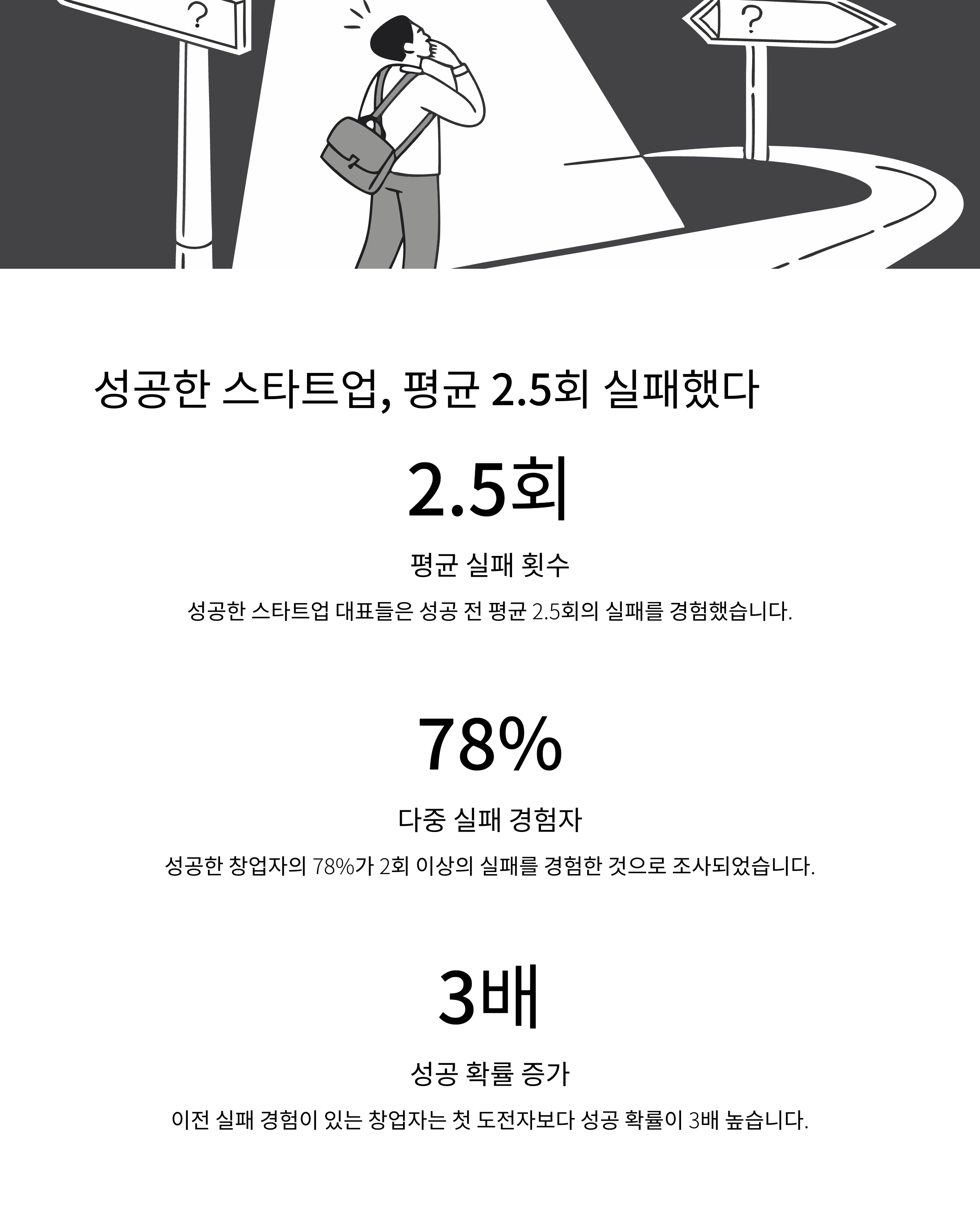 | 성공한 스타트업 대표의 평균 실패 횟수 | 2.5회 |