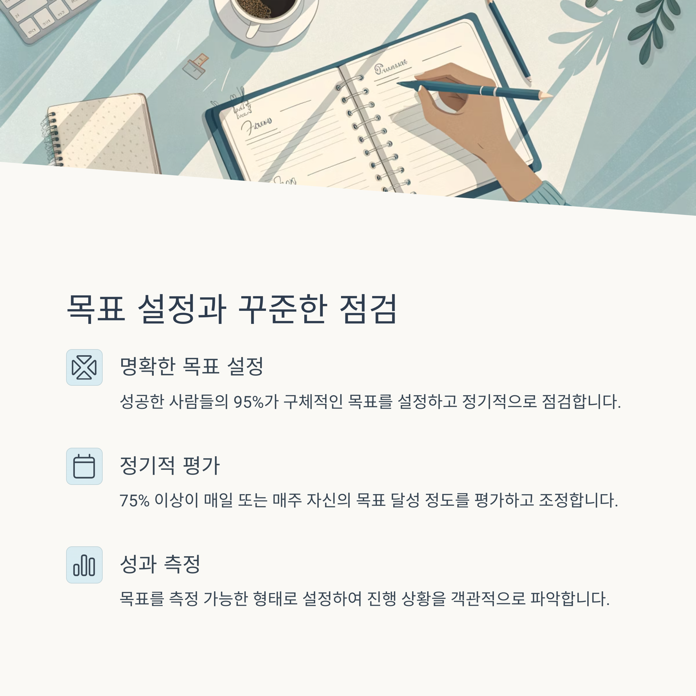 | 목표 설정과 점검 | 95% 이상의 성공한 사람 |