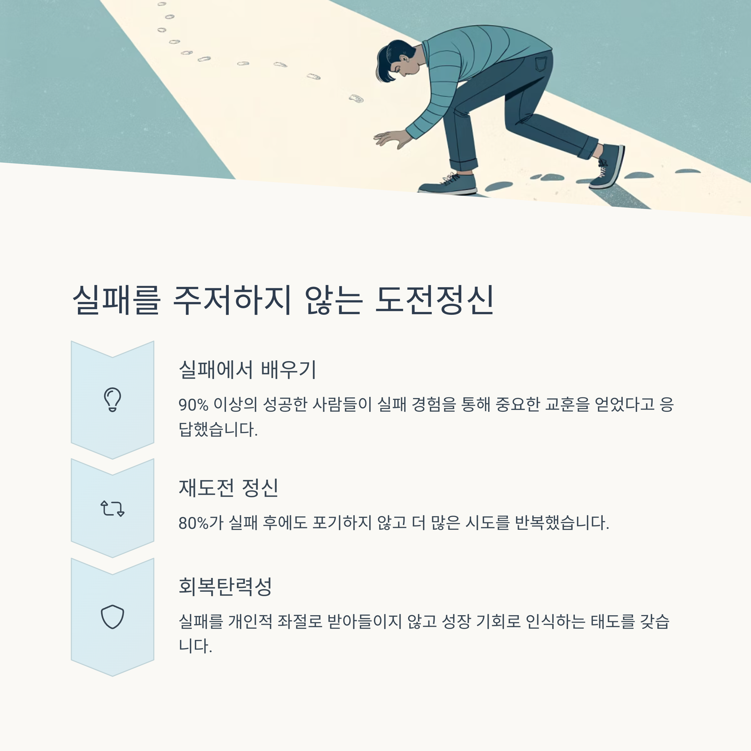 실패를 두려워하지 않으며, 이를 통해 배우고 성장하는 과정이 중요합니다.