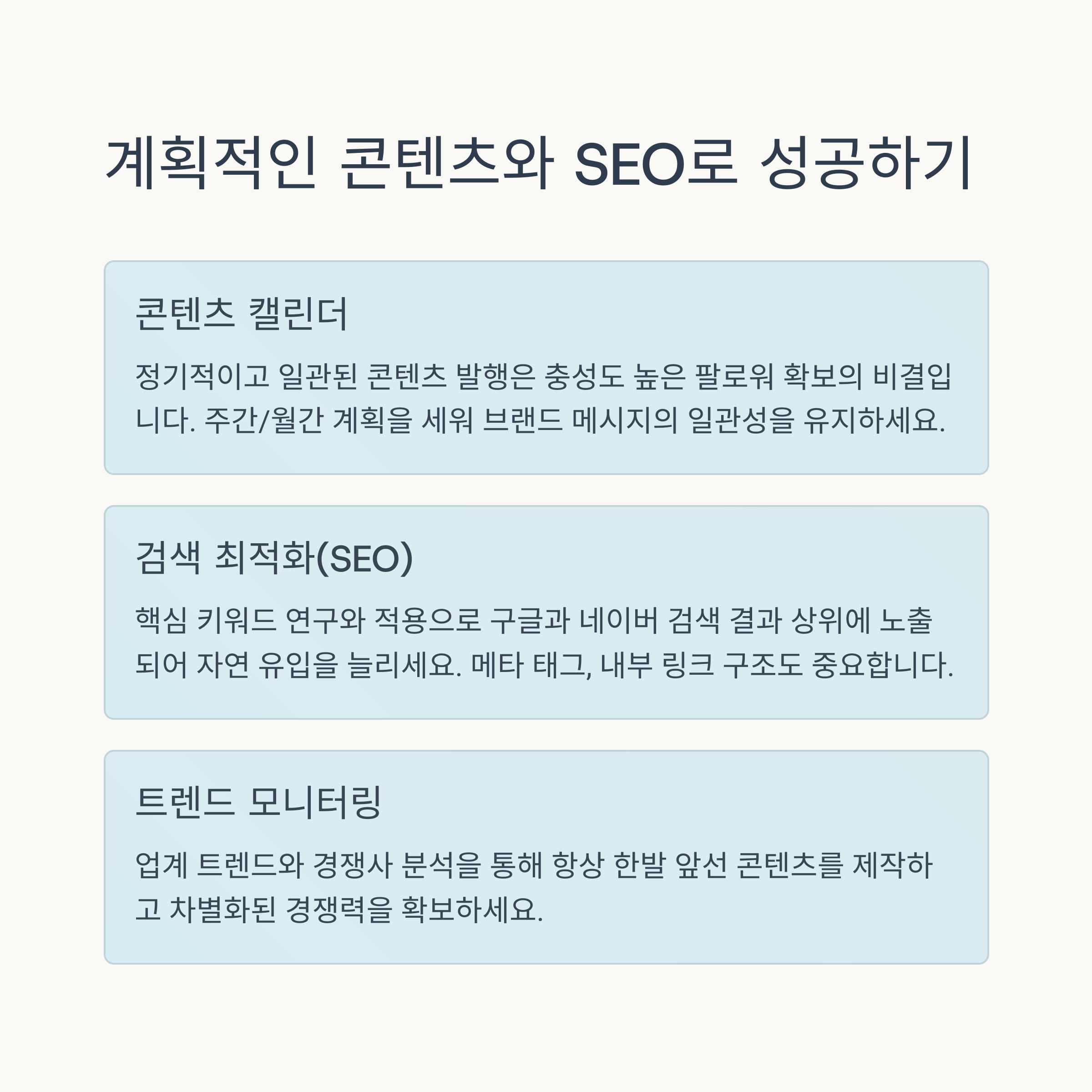 이러한 이유로, 주기적인 콘텐츠 생산과 최신 트렌드 반영이 중요합니다.