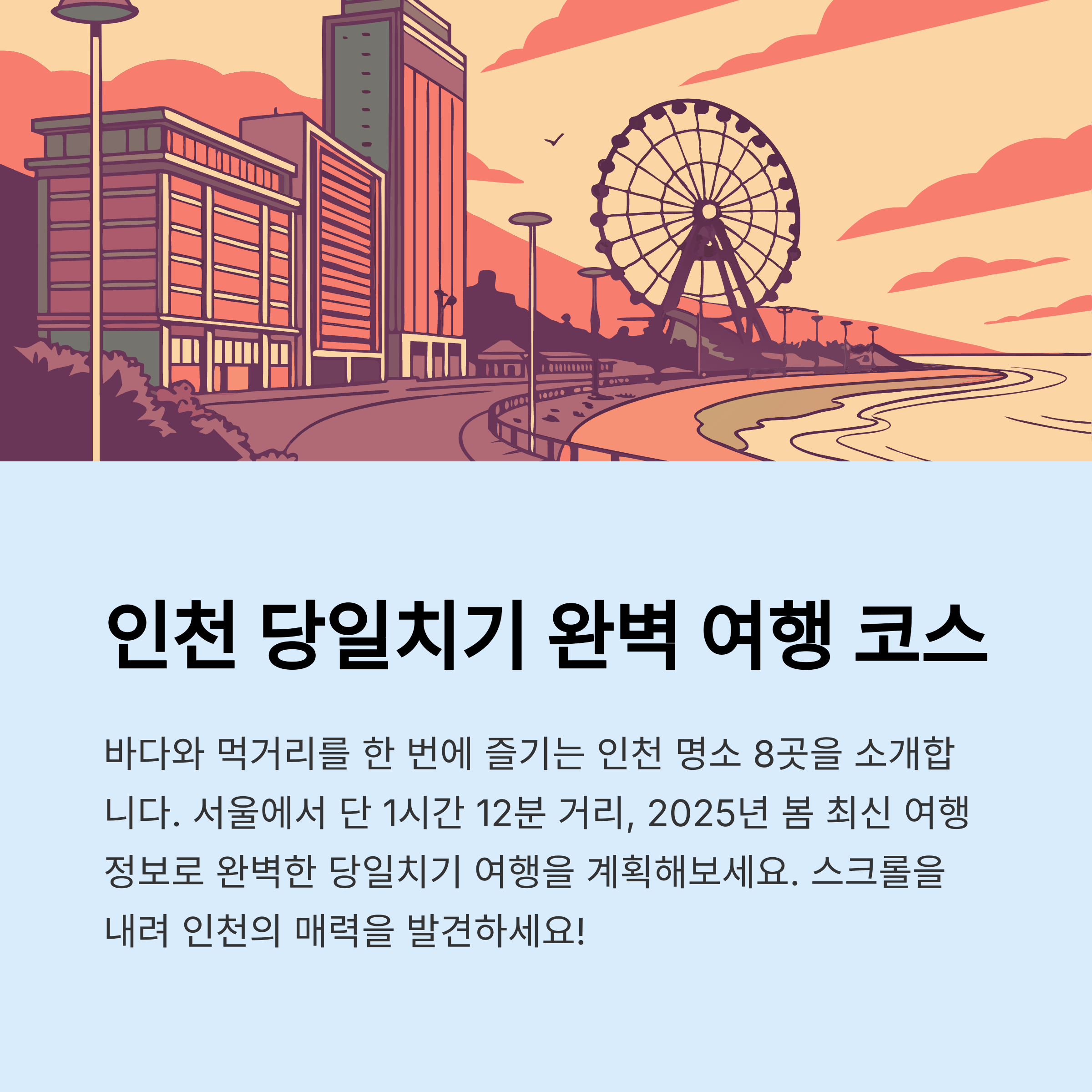 오늘은 인천의 매력을 제대로 느낄 수 있는 당일 여행 코스를 소개합니다.