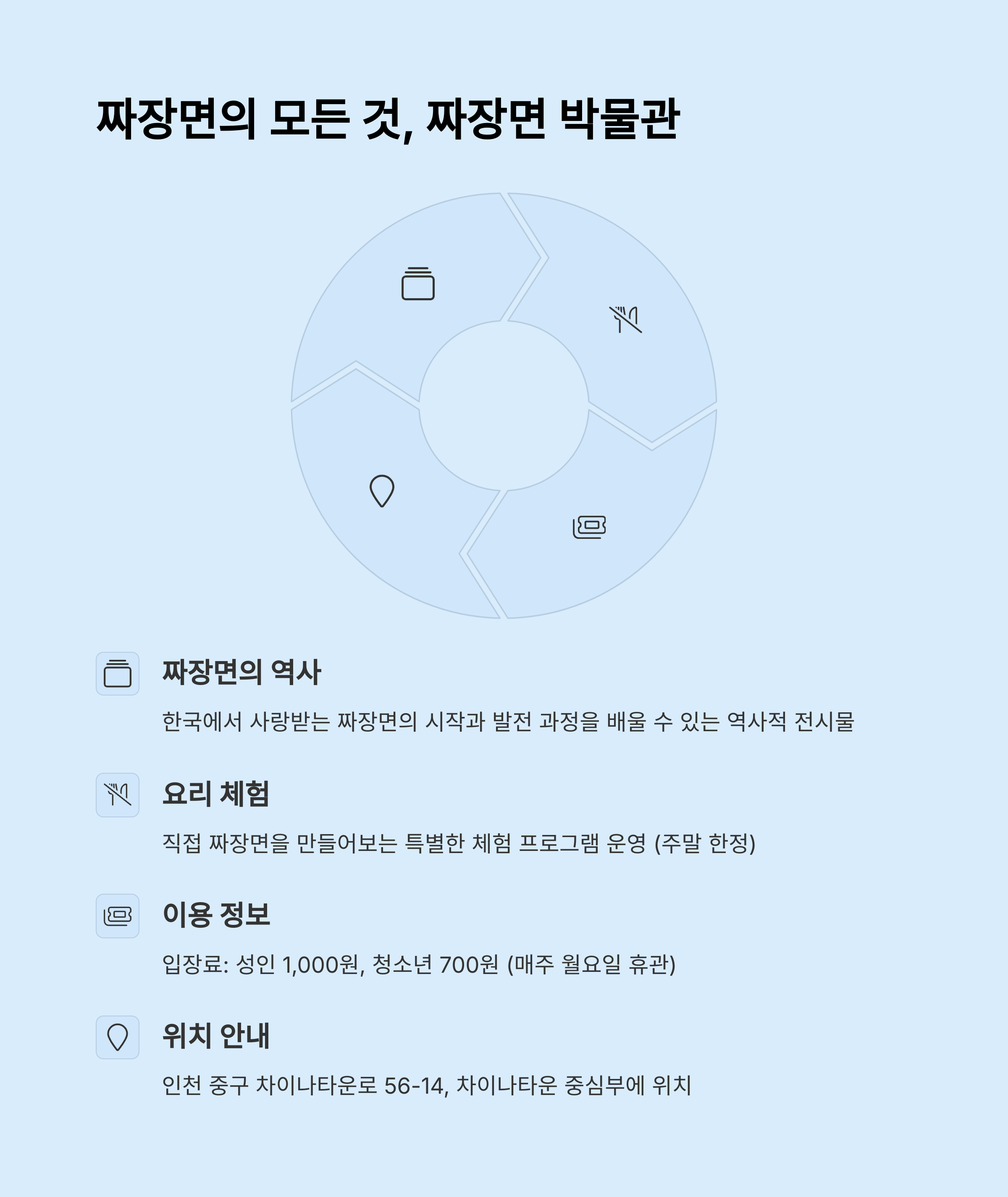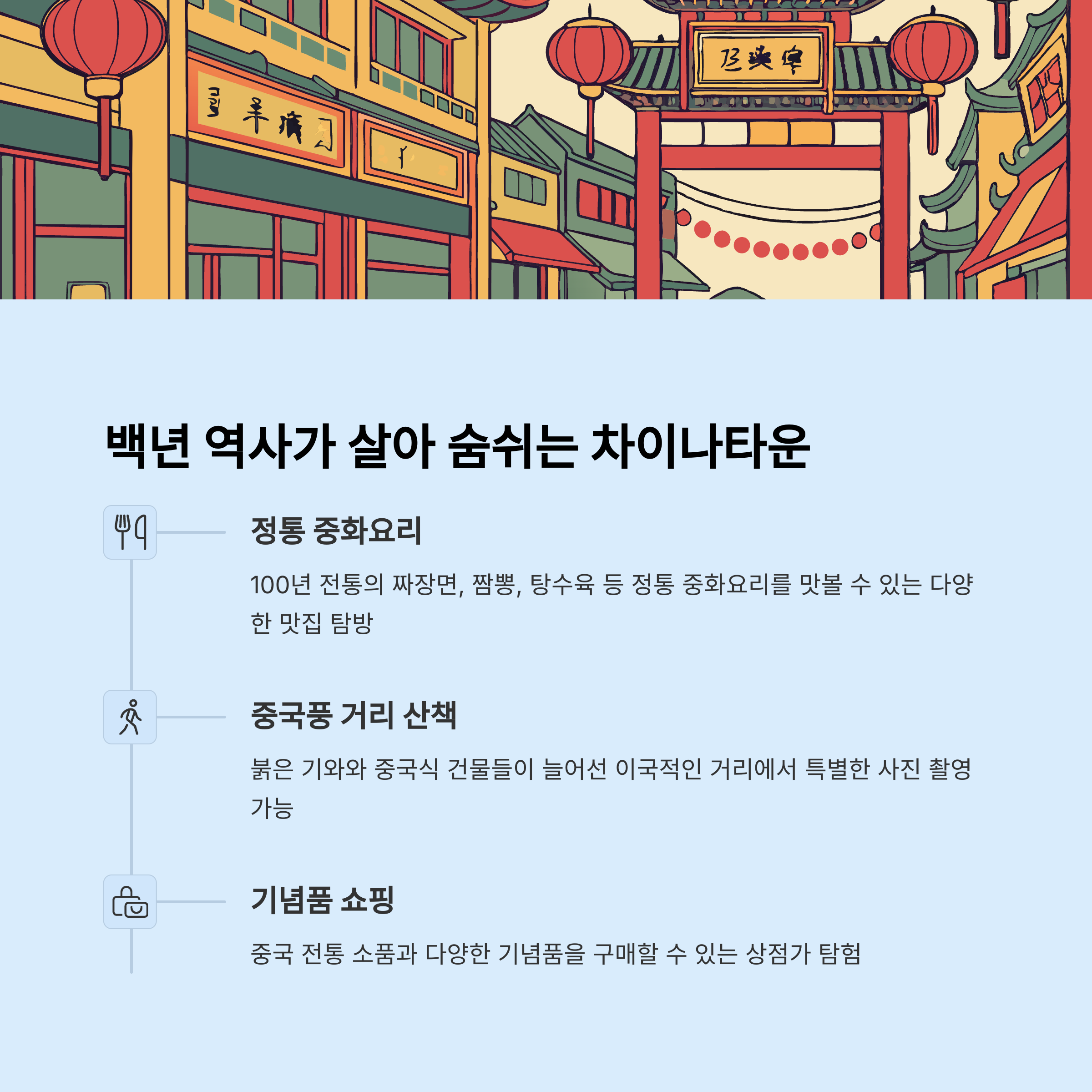 이후에는 인천 차이나타운으로 이동해 정통 중식 요리인 짜장면과 짬뽕을 맛보며 힐링하는 시간을 가져보세요.