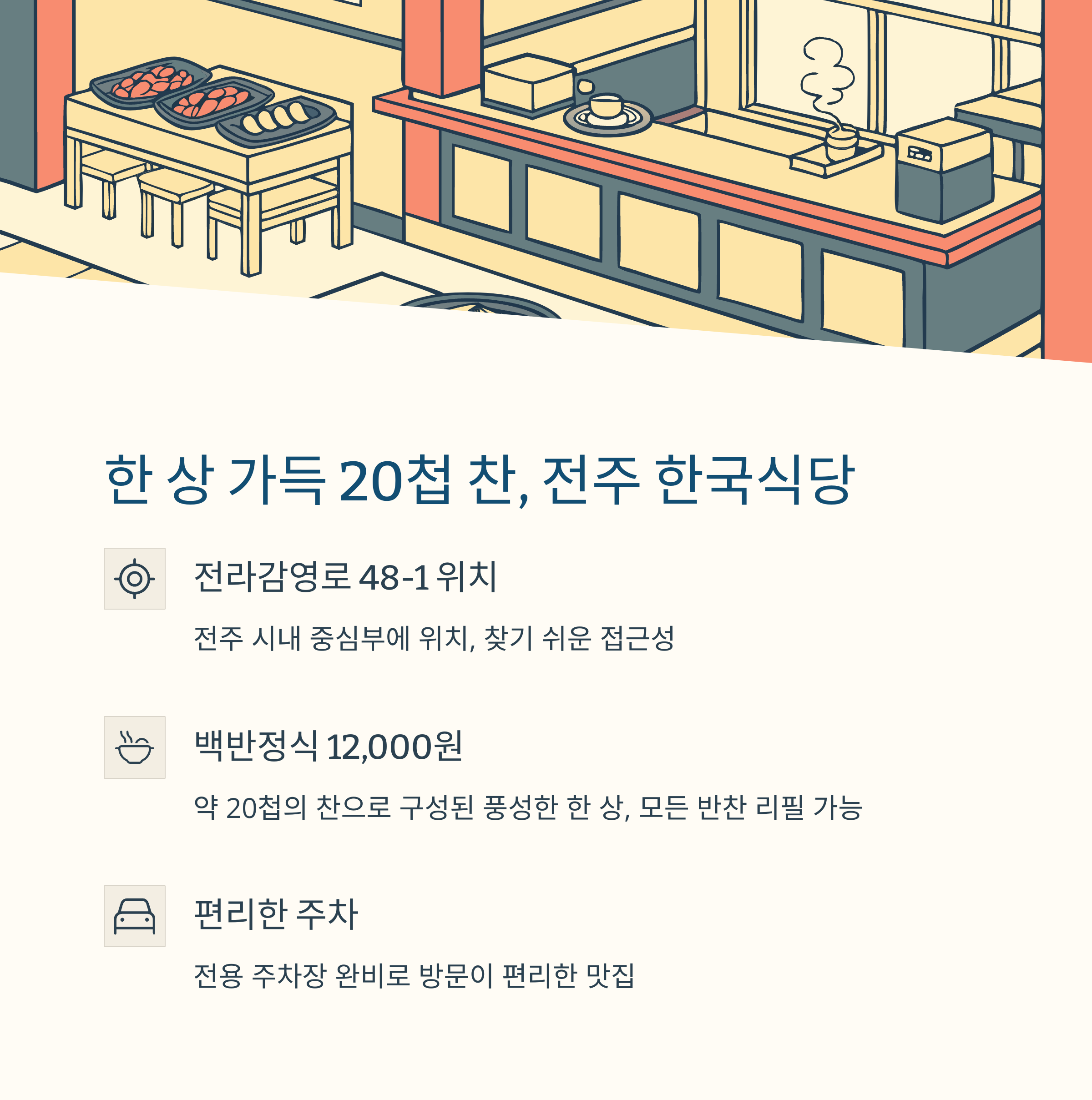 전주 한국식당 | 전라감영로 48-1 | 백반정식 | 12,000원 |