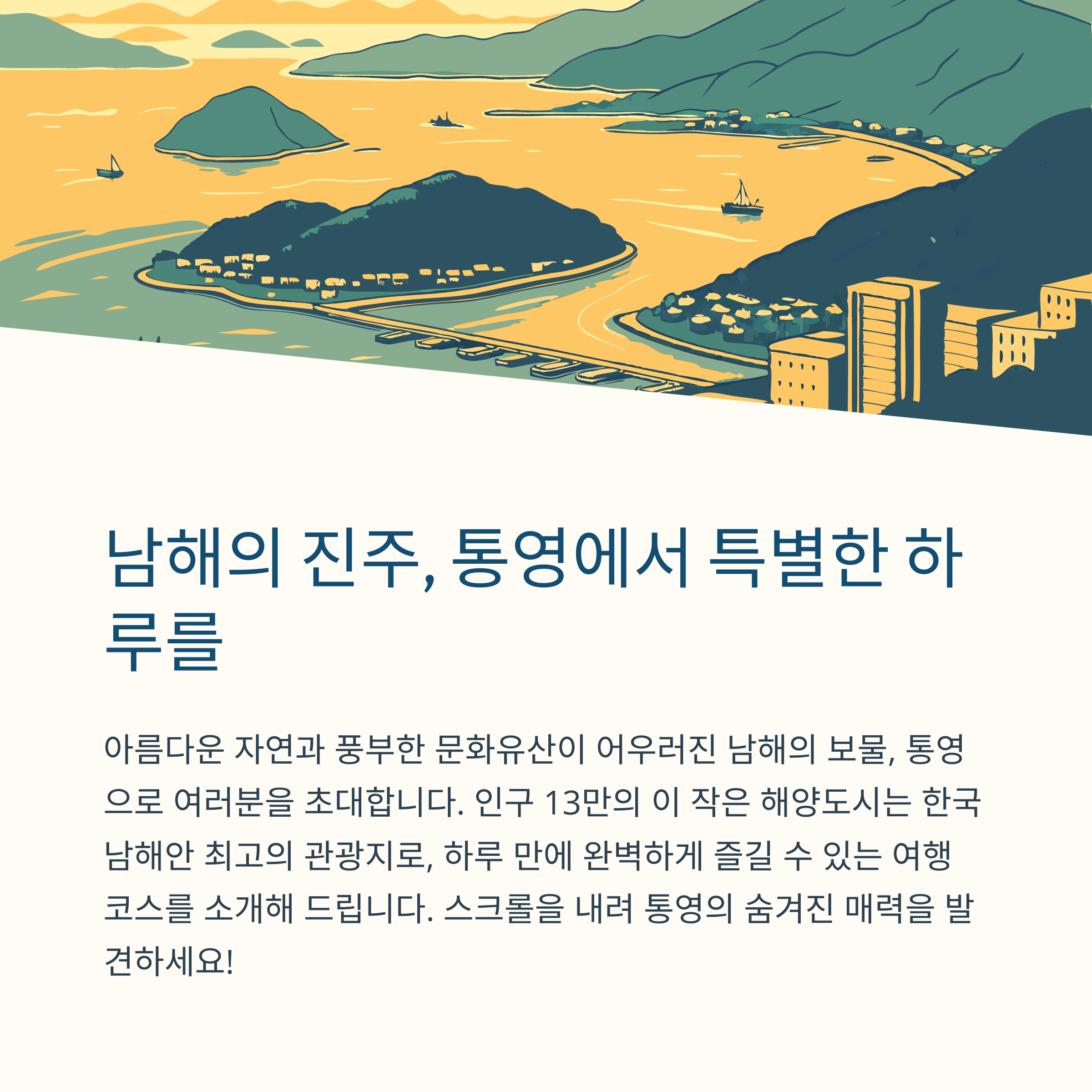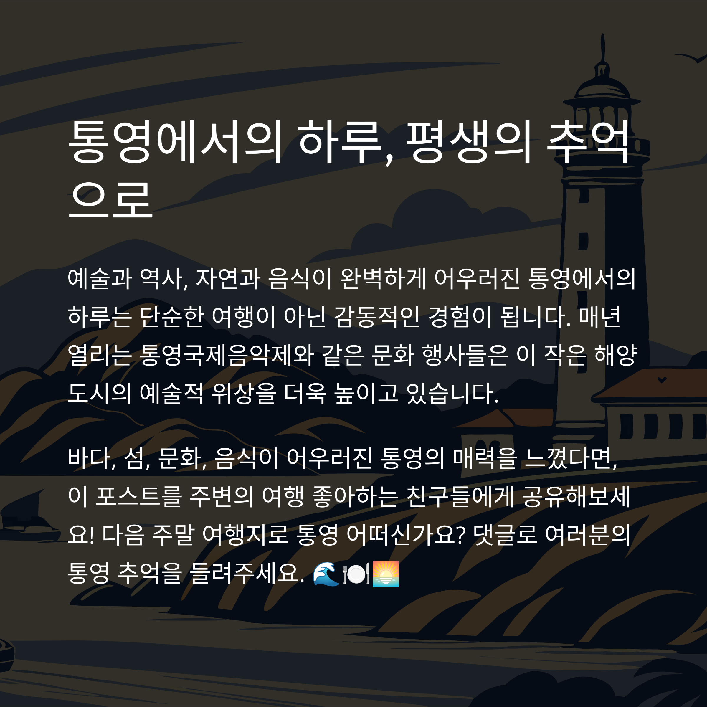 통영은 문화와 자연이 조화를 이루는 도시입니다.