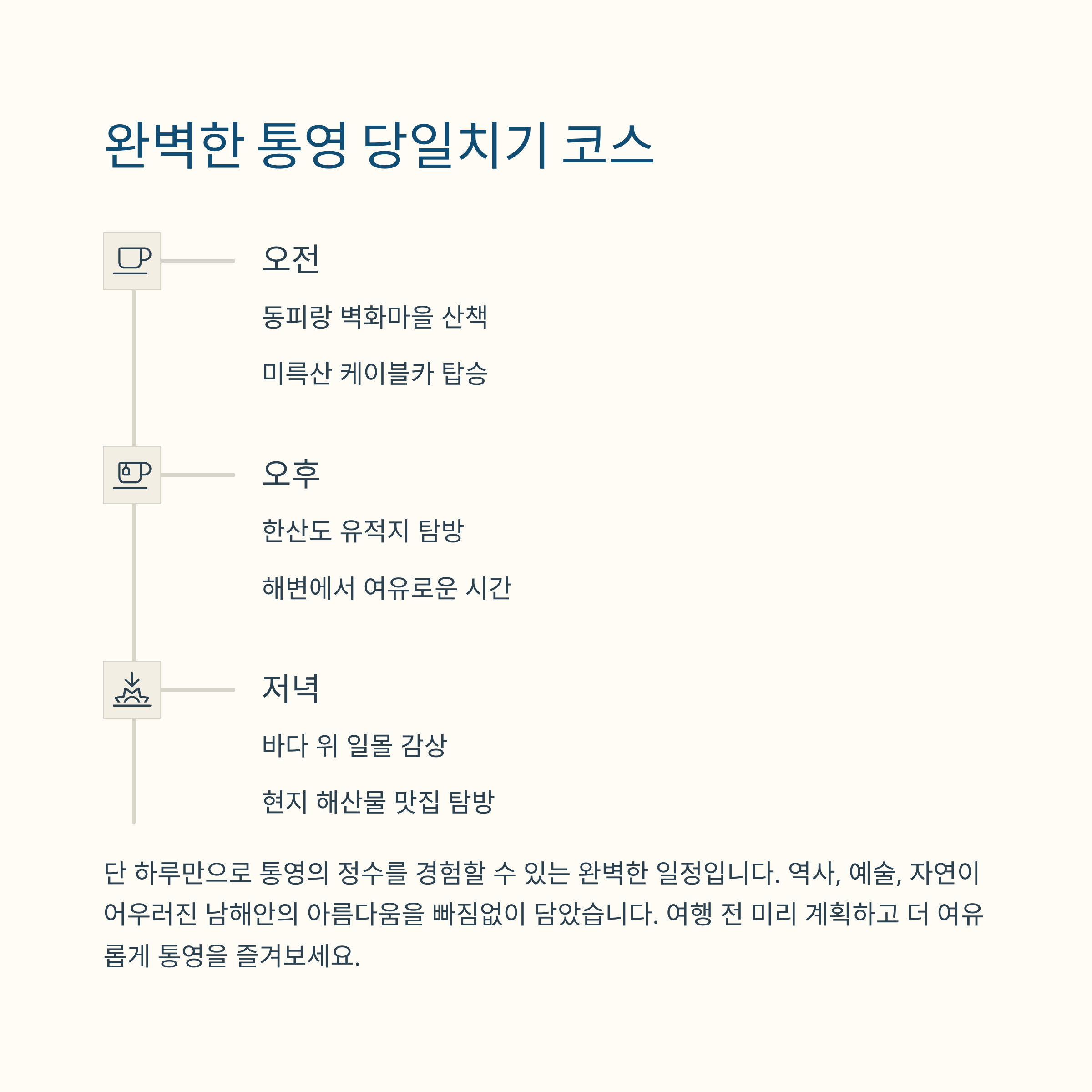 하루 동안 통영의 매력을 느낄 수 있는 최적의 계획을 소개하겠습니다.