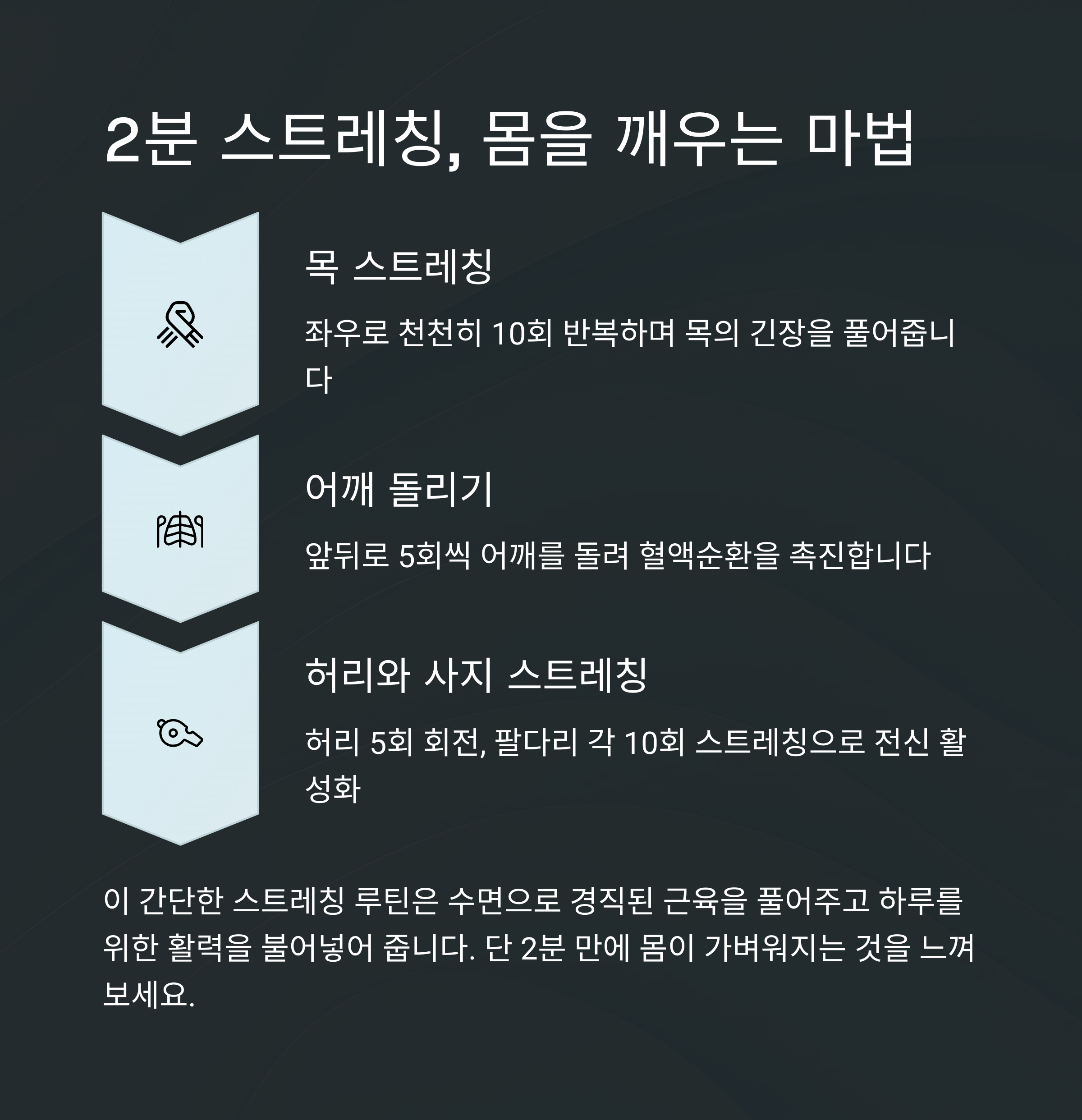 이 간단한 루틴은 신체적, 정신적 균형을 유지하는 데 도움을 줍니다.