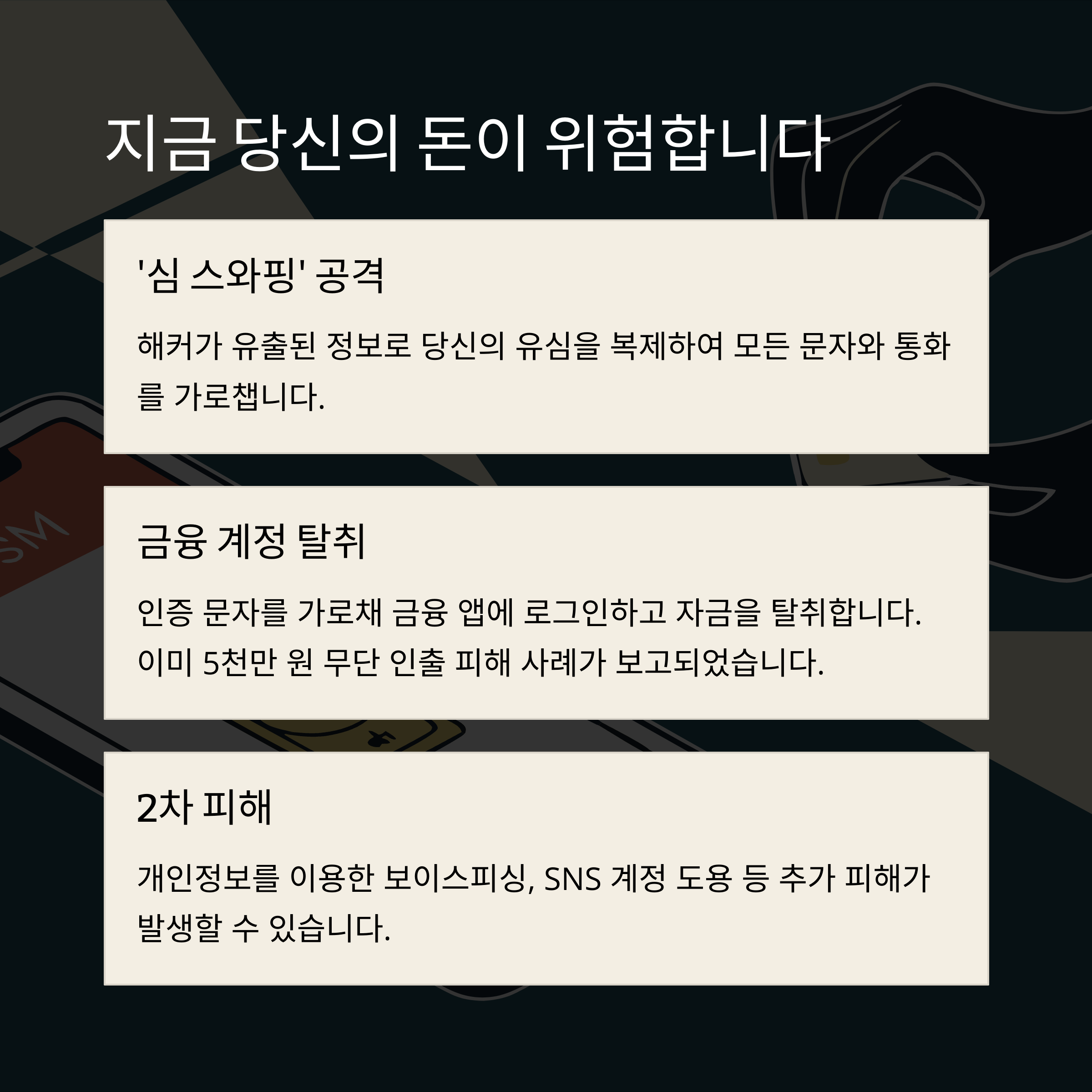 특히, 심 스와핑 공격이나 인증 우회와 같은 방법으로 개인의 금융 자산이 탈취될 수 있습니다.